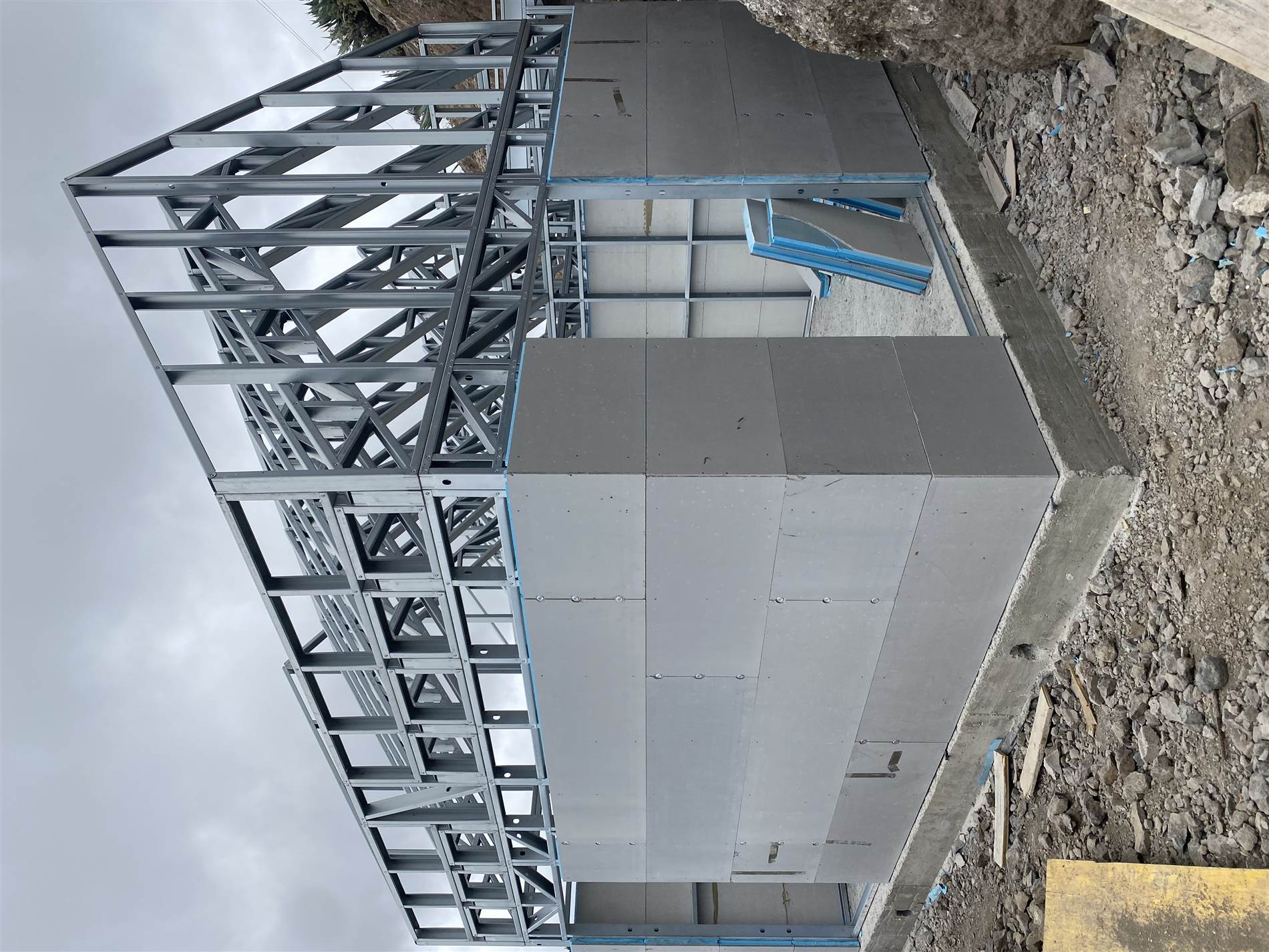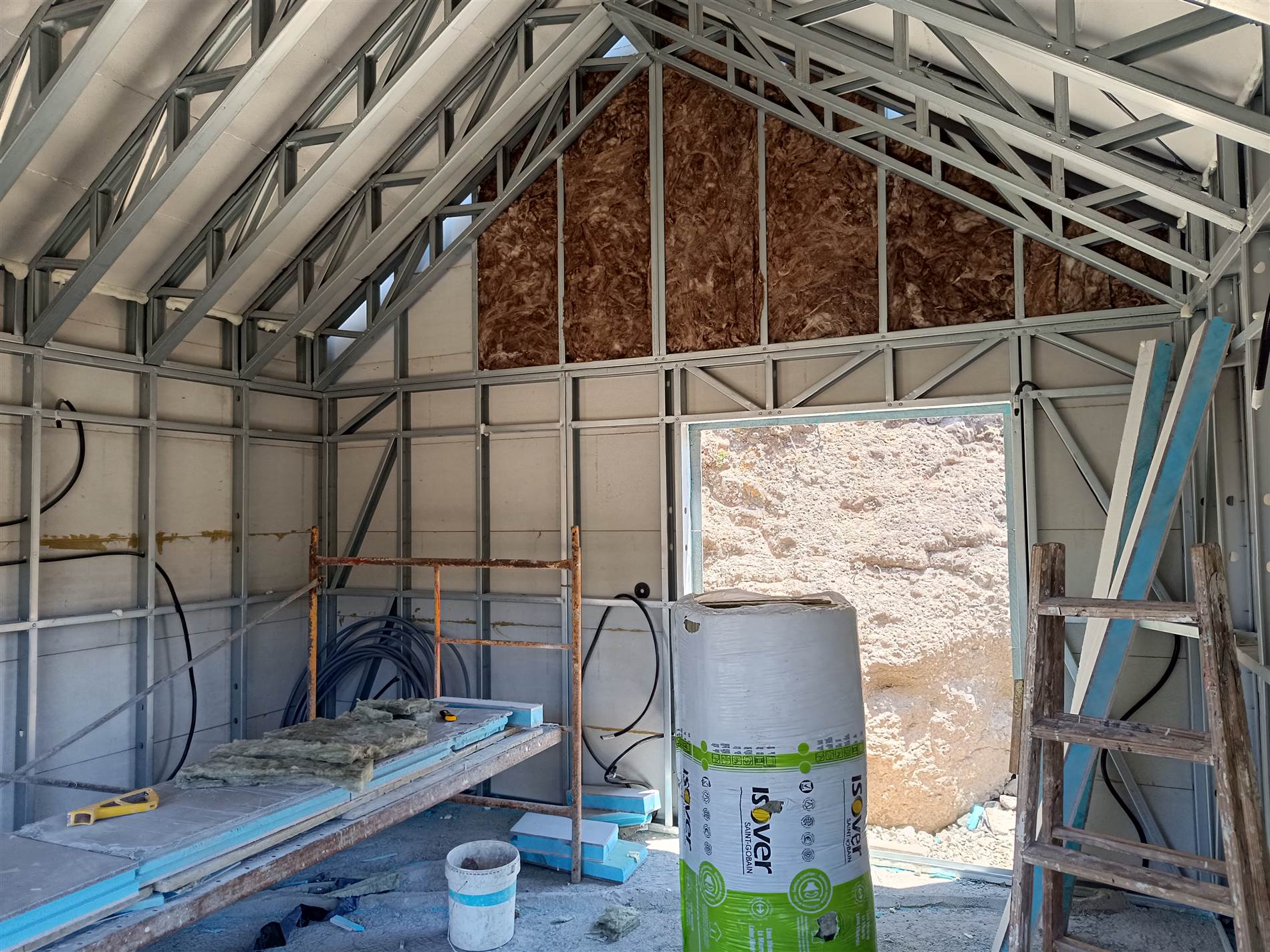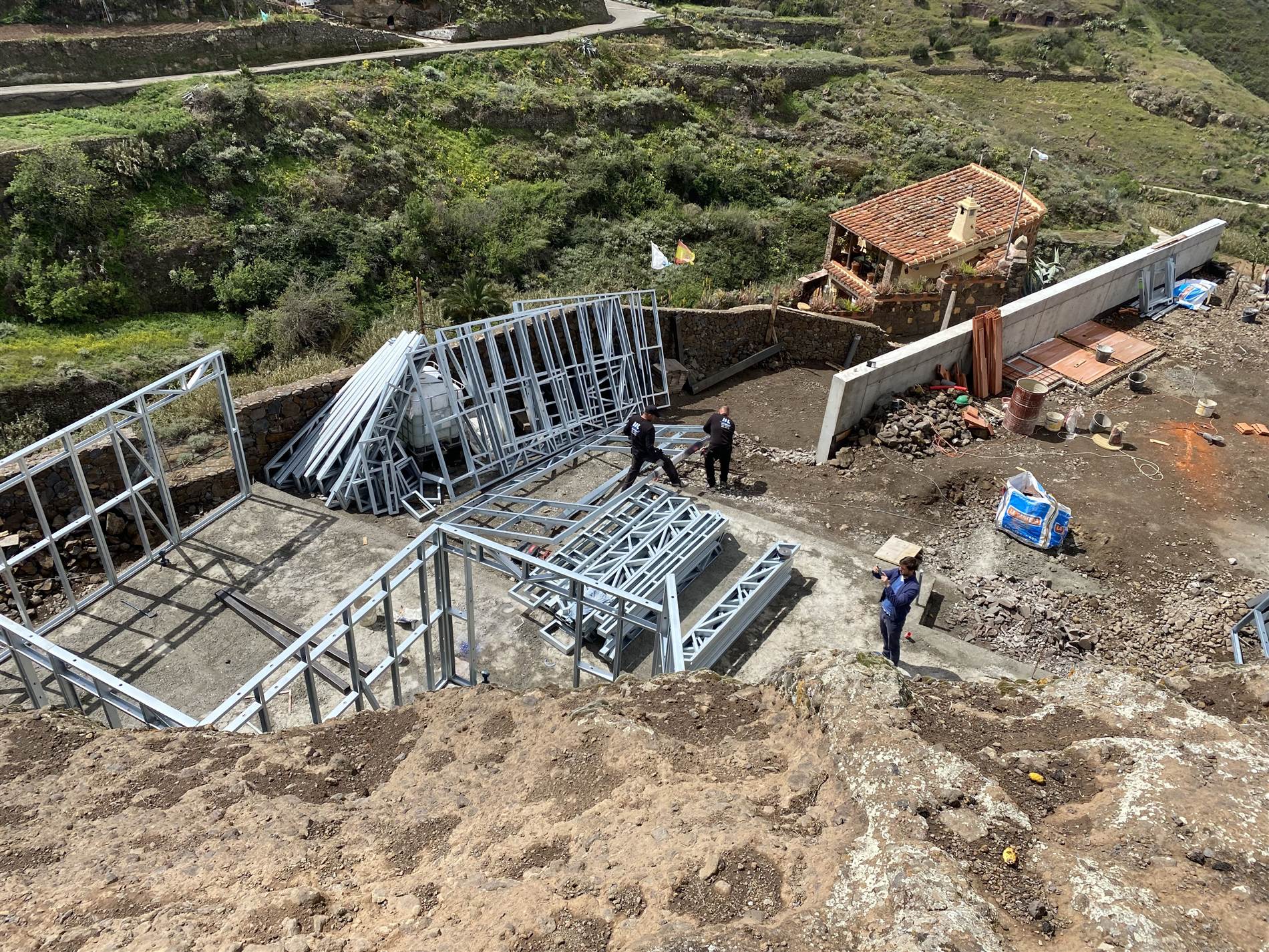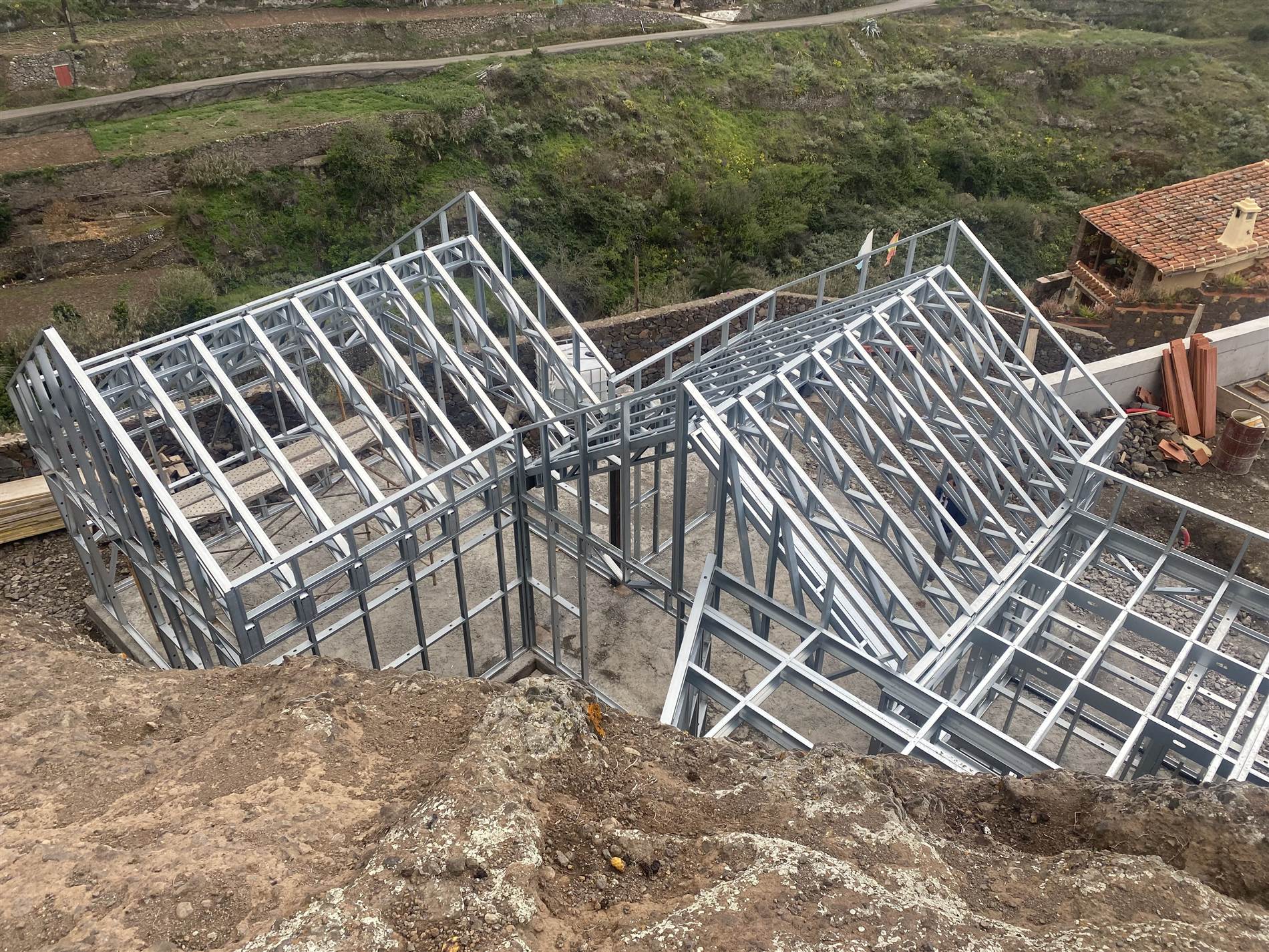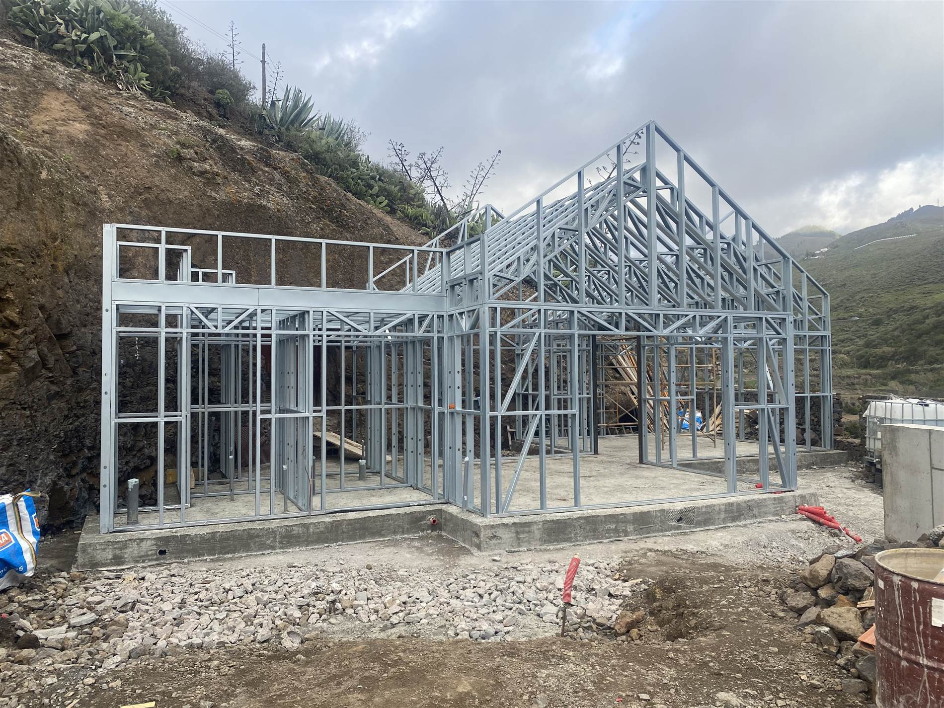 El proceso constructivo se ha resuelto mediante un sistema industrializado de Light Steel Framing que permite adaptarse con eficacia a las limitaciones de accesibilidad y pendiente de la parcela. Esta elección técnica reduce los tiempos de ejecución, disminuye la generación de residuos y mejora el control de calidad, garantizando un impacto ambiental reducido. La envolvente cuenta con un aislamiento térmico exterior continuo que elimina puentes térmicos y optimiza la eficiencia energética durante todo el año.