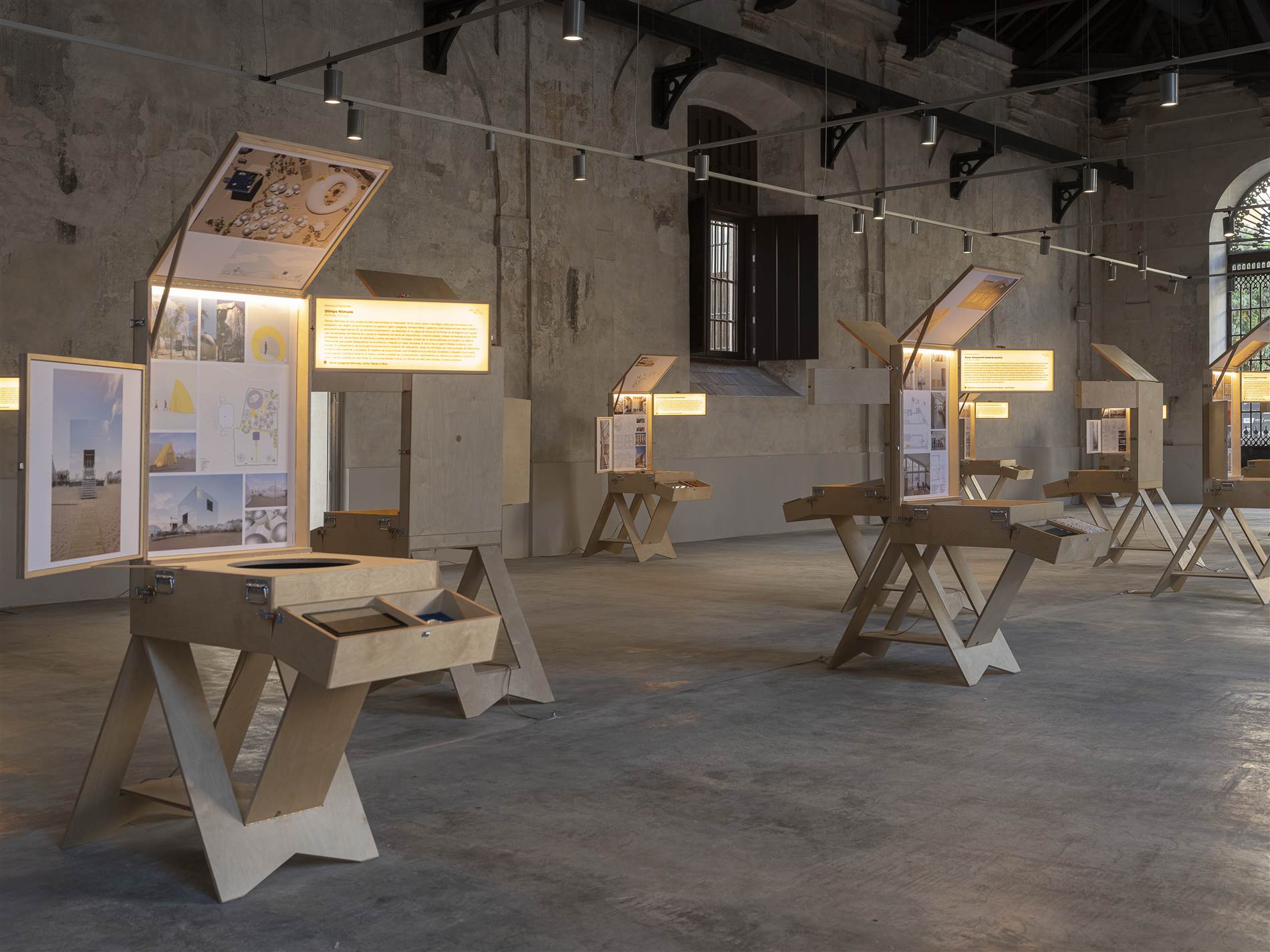 La construcción de otro proyecto generó una colección de residuos de madera que desencadenaron la realización de éste. El 100% de la madera empleada proviene de aquel encofrado de listones de pino que han sido simplemente retirados y cortados según las medidas requeridas. Todos los nudos están atornillados y son desmontables y respetan el árbol que es una encina centenaria.
