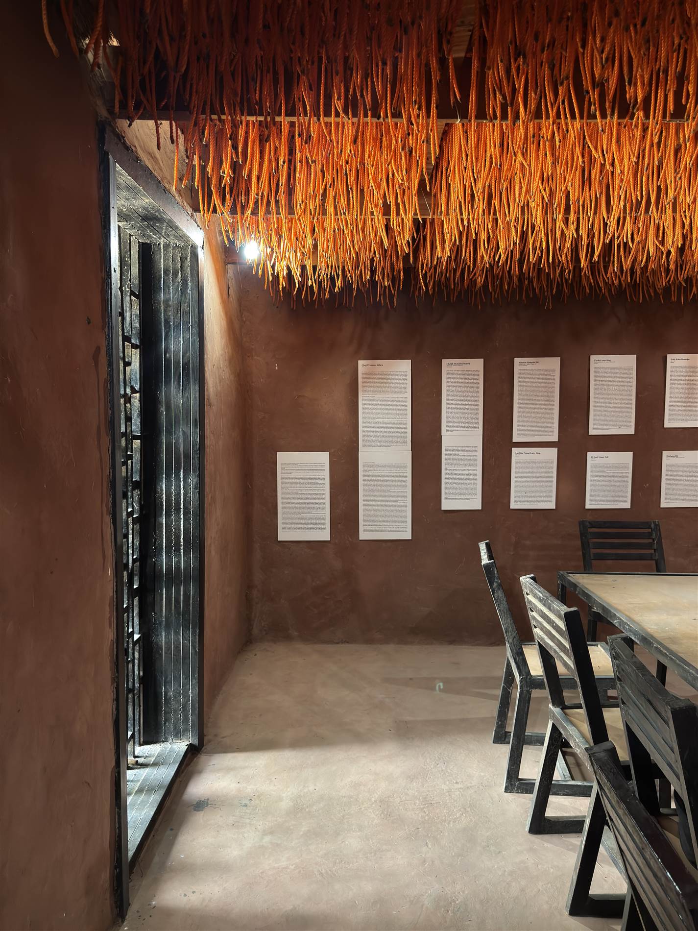La combinación de paredes de saco de tierra, acabados tradicionales de paja de arcilla, tratamiento repelente al agua con aceite de cacahuete y madera controlada da como resultado una estructura replicable, sostenible y resistente, capaz de adaptarse al clima y recursos locales.