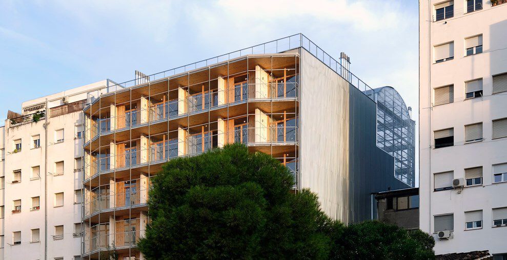 Manuel Sánchez-Villanueva y Carlo Beuter, de haz Arquitectura expondrán su experiencia con una obra: Centro de Vida Comunitaria de Trinitat Vella: un equipamiento municipal en madera de mínimo impacto ambiental. Fotografía en hazarquitectura.com.
