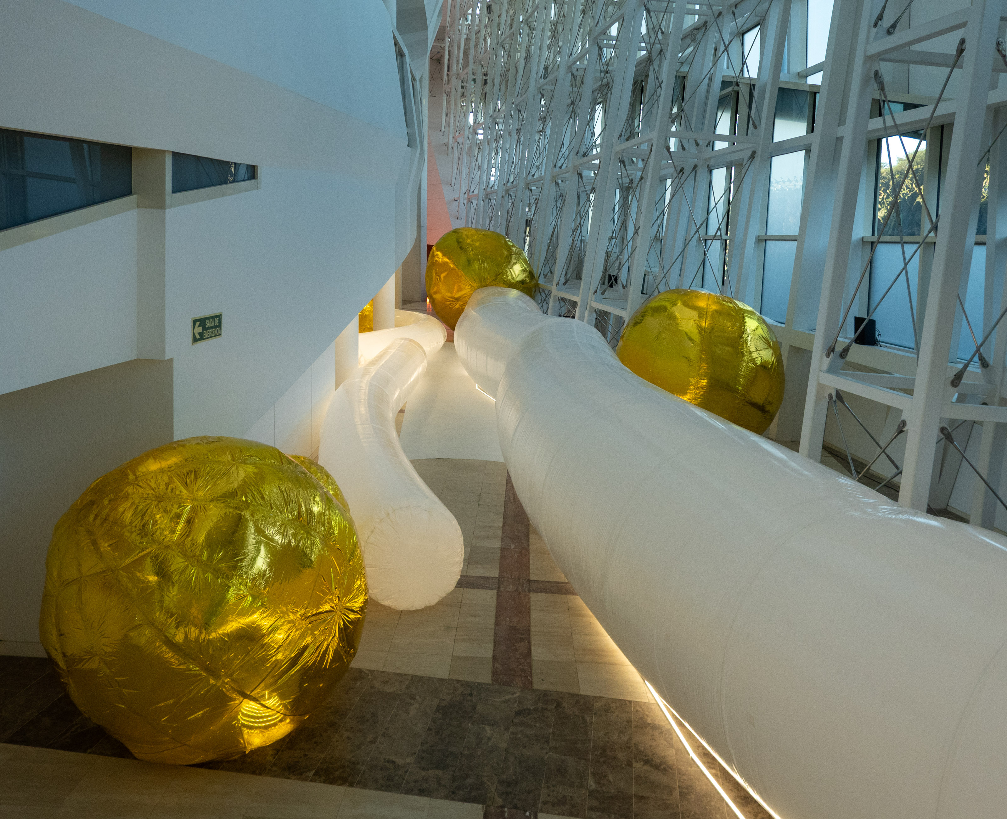 La tecnología constructiva de la arquitectura inflable tiene un origen militar que se reinterpretó de forma cultural (o más bien contracultural) en la década de los 60s y 70s del pasado siglo. En España, el arquitecto José Miguel de Prada Poole desarrolló obras paradigmáticas dentro de esta tipología, las cuales han servido de aprendizaje técnico para el desarrollo de esta obra.