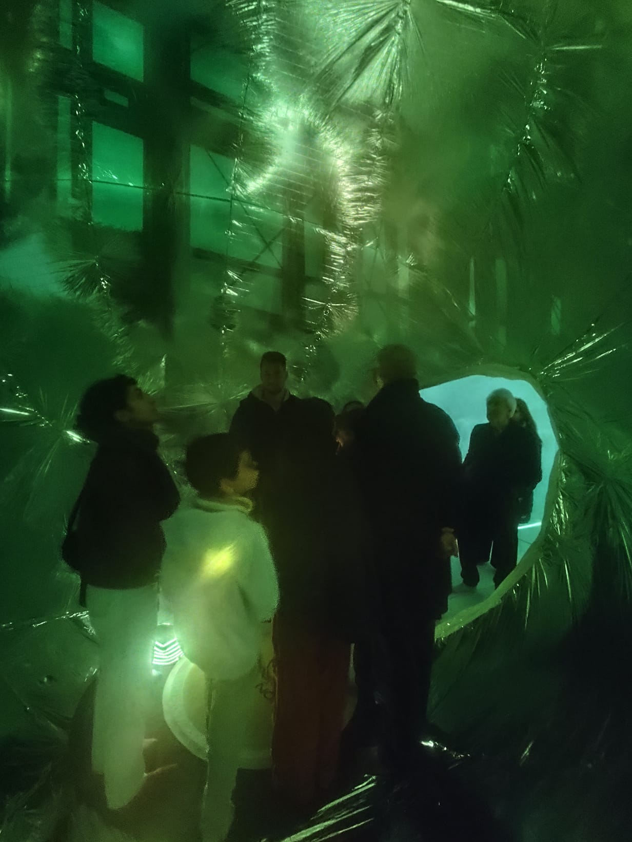 Esta intervención no es solo un ejercicio estético, sino la materialización de un profundo aprendizaje técnico y teórico. Prieto, cuya tesis doctoral profundizó en las estructuras neumáticas de José Miguel de Prada Poole —máximo exponente de la arquitectura inflable en España y visionario de ciudades utópicas—, traslada aquí ese conocimiento al límite de lo emocional. La herencia de Prada Poole se hace presente en la precisión de las membranas de plástico reciclable y en la creación de una "arquitectura atmosférica" que envuelve al visitante.