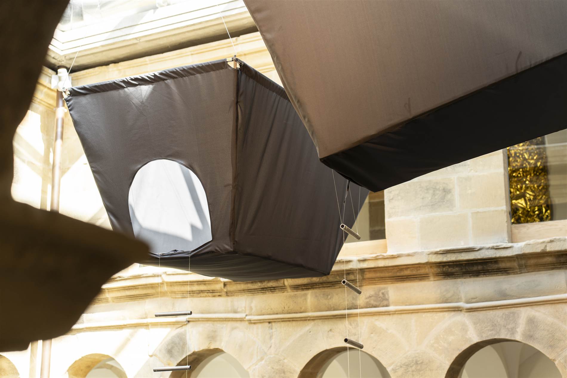 El recorrido cierra con las Inverted Tents (Tiendas Invertidas) de Aristide Antomas, camas suspendidas en edificios urbanos en crisis. Este proyecto oscila entre la utopía de nuevas formas de vida común y la distopía de la precariedad y el desplazamiento forzado, invitando a repensar el habitar en la contingencia.