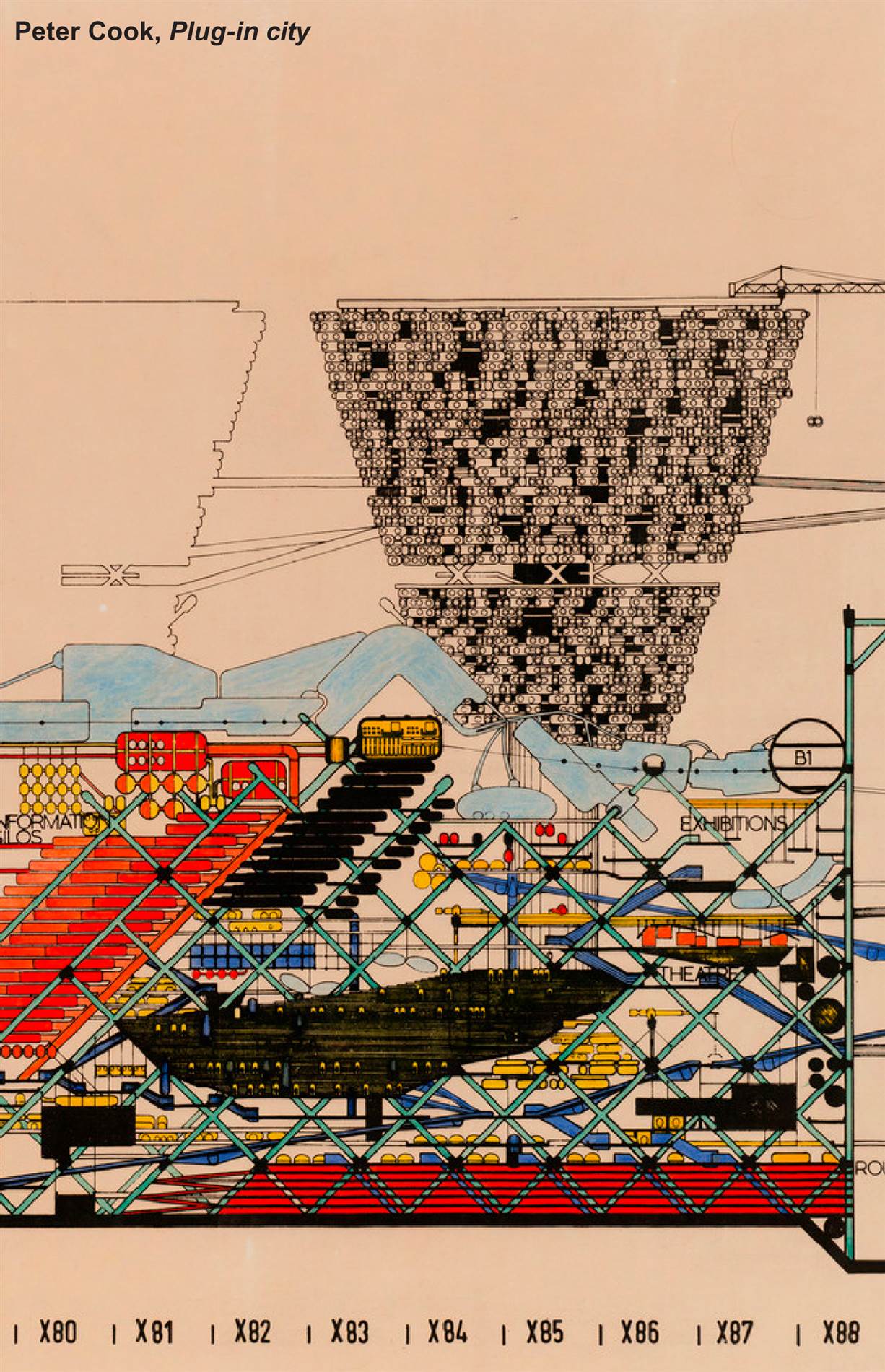 Se presentan las visiones de Constant Nieuwenhuys (New Babylon), una ciudad mundial para el Homo Ludens (el hombre que juega), y del colectivo Archigram (Plug-in City y Filter City), con sus arquitecturas modulares y en constante mutación, inspiradas por la cultura pop y la tecnología.