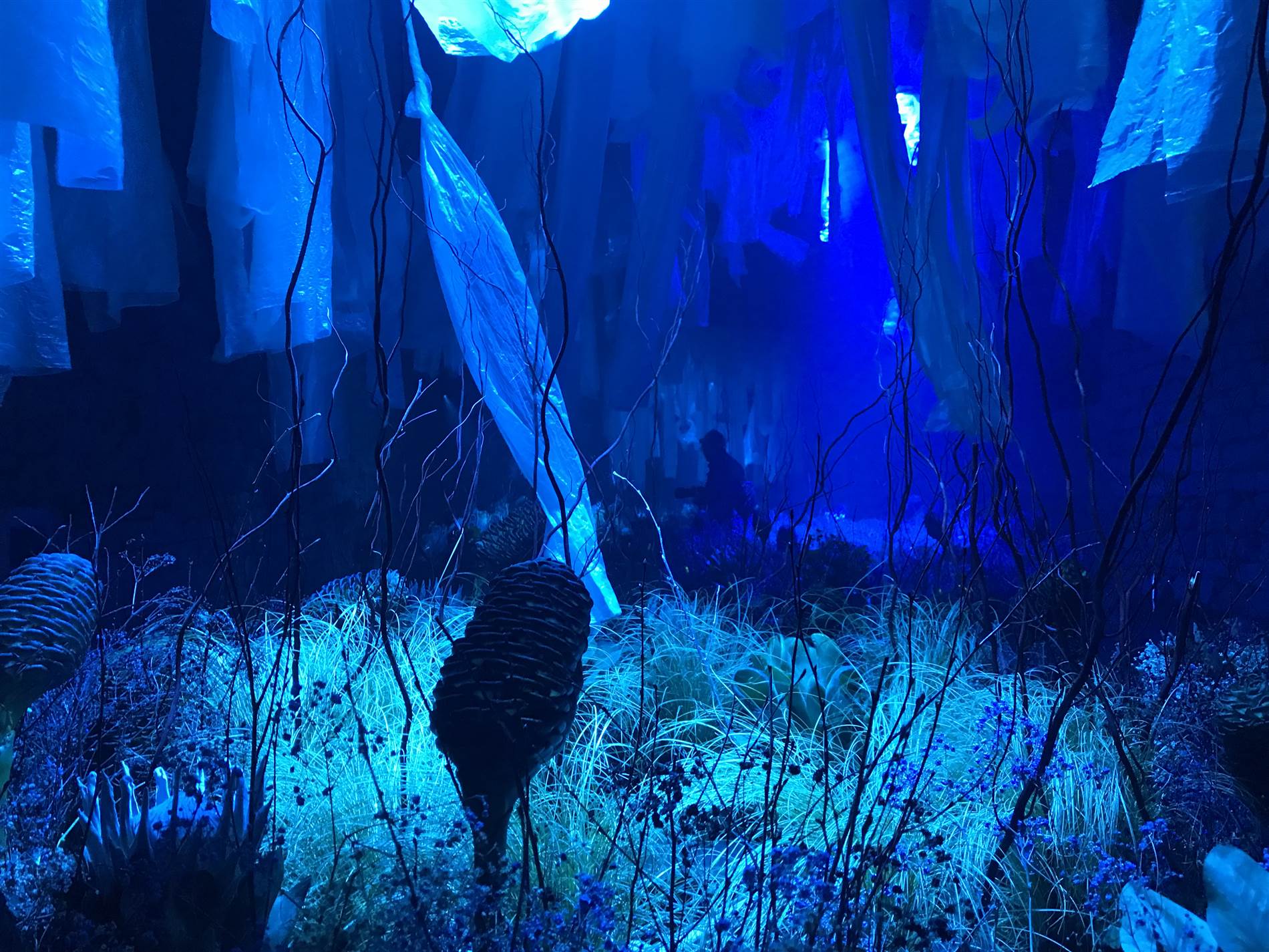 En este pozo de luz, el mundo sensible y efímero de la flor se expresa mediante un filtro téxtil etéreo, de organza y tul, para evocar el imaginario narcótico de la flor del ensueño.