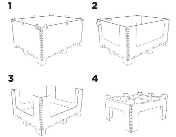 Todos estos muebles pueden hacerse a partir de la madera de la caja de embalaje y cualquier persona con conocimientos básicos de bricolaje puede hacerlos fácilmente. Fontanot ha publicado una guía descriptiva con los muebles más originales que explica de forma muy gráfica y sencilla los pasos a seguir para su montaje.
