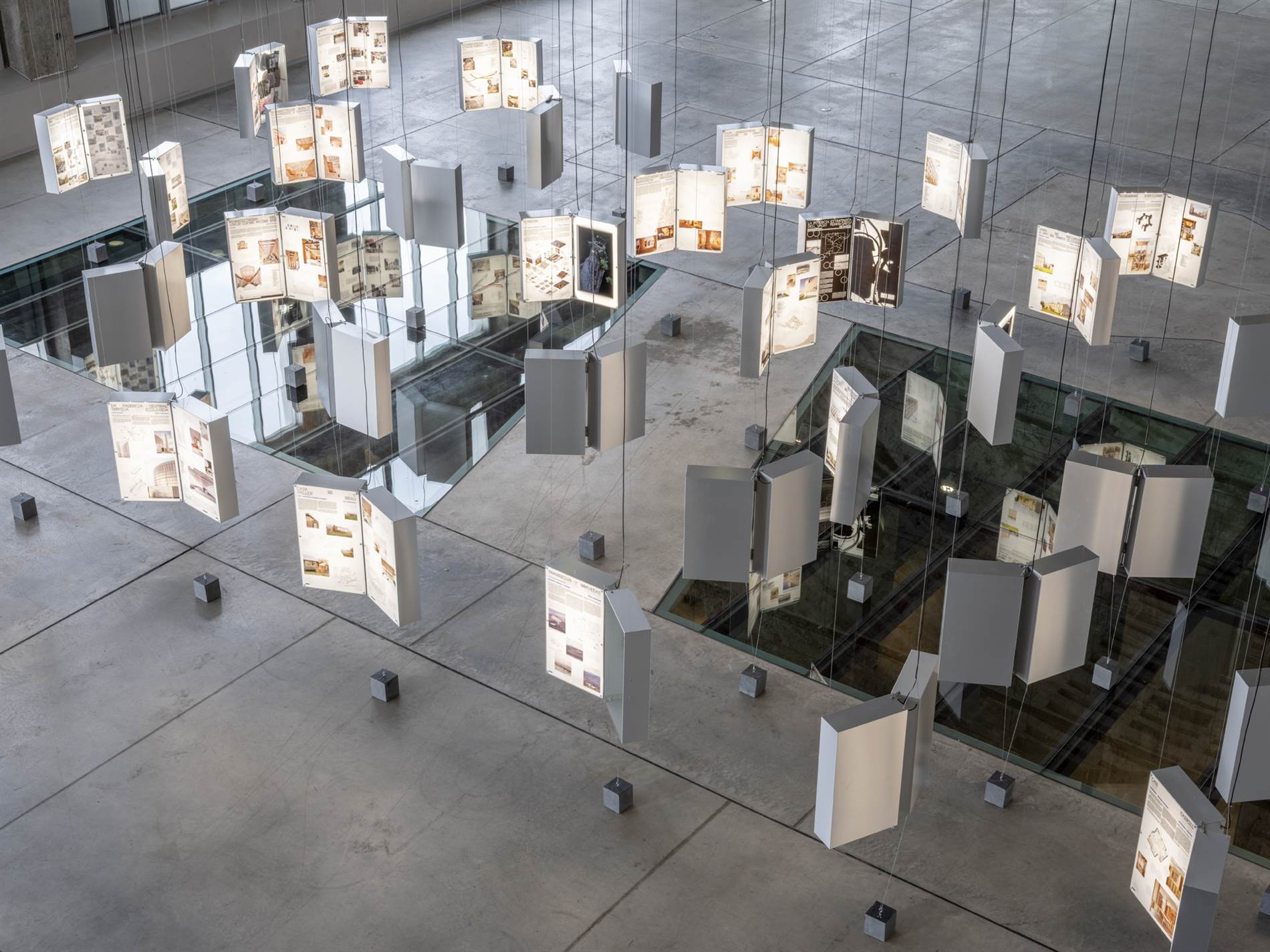 Para el diseño expositivo, Ander Bados y Miguel Ramón toman como referencia la maleta: una arquitectura mínima que simboliza la itinerancia y el viaje. Esta se reinterpreta como un objeto ligero, metálico y abierto que muestra de manera esencial las claves de las obras expuestas. La repetición de este dispositivo elimina jerarquías e invita a un recorrido libre que, en última instancia, define una red interconectada trazada por el propio visitante.