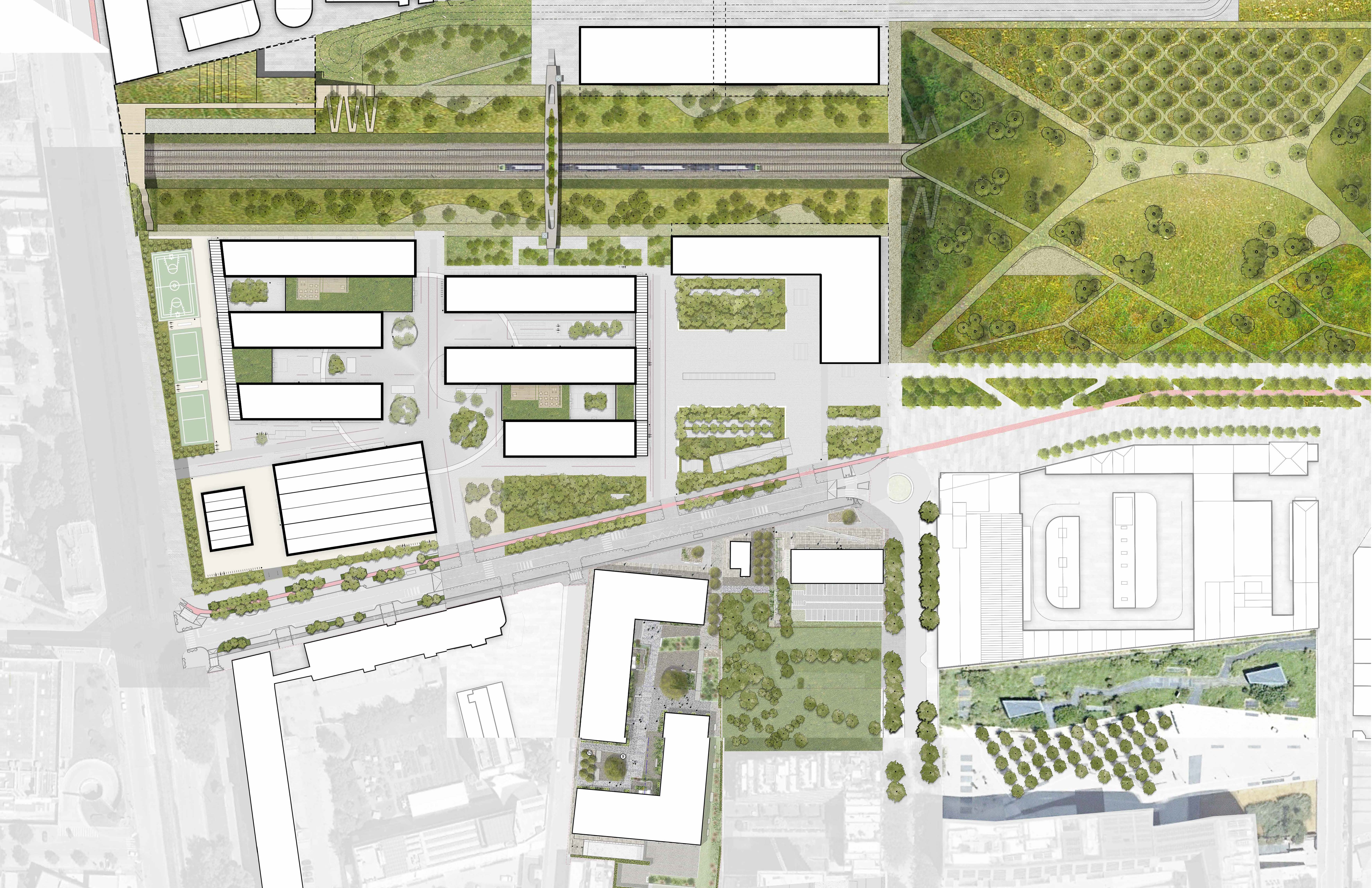 Ubicada en el emplazamiento de una antigua playa de vías, la Villa Olímpica encuentra su inspiración arquitectónica tanto en la historia industrial del lugar como en las tipologías edificatorias de Milán. El plan de ordenación adopta el ritmo del paisaje urbano circundante, creando una manzana urbana porosa con una variedad de nuevos recorridos públicos y conexiones con otros componentes del Plan Director de la zona ferroviaria de Porta Romana.