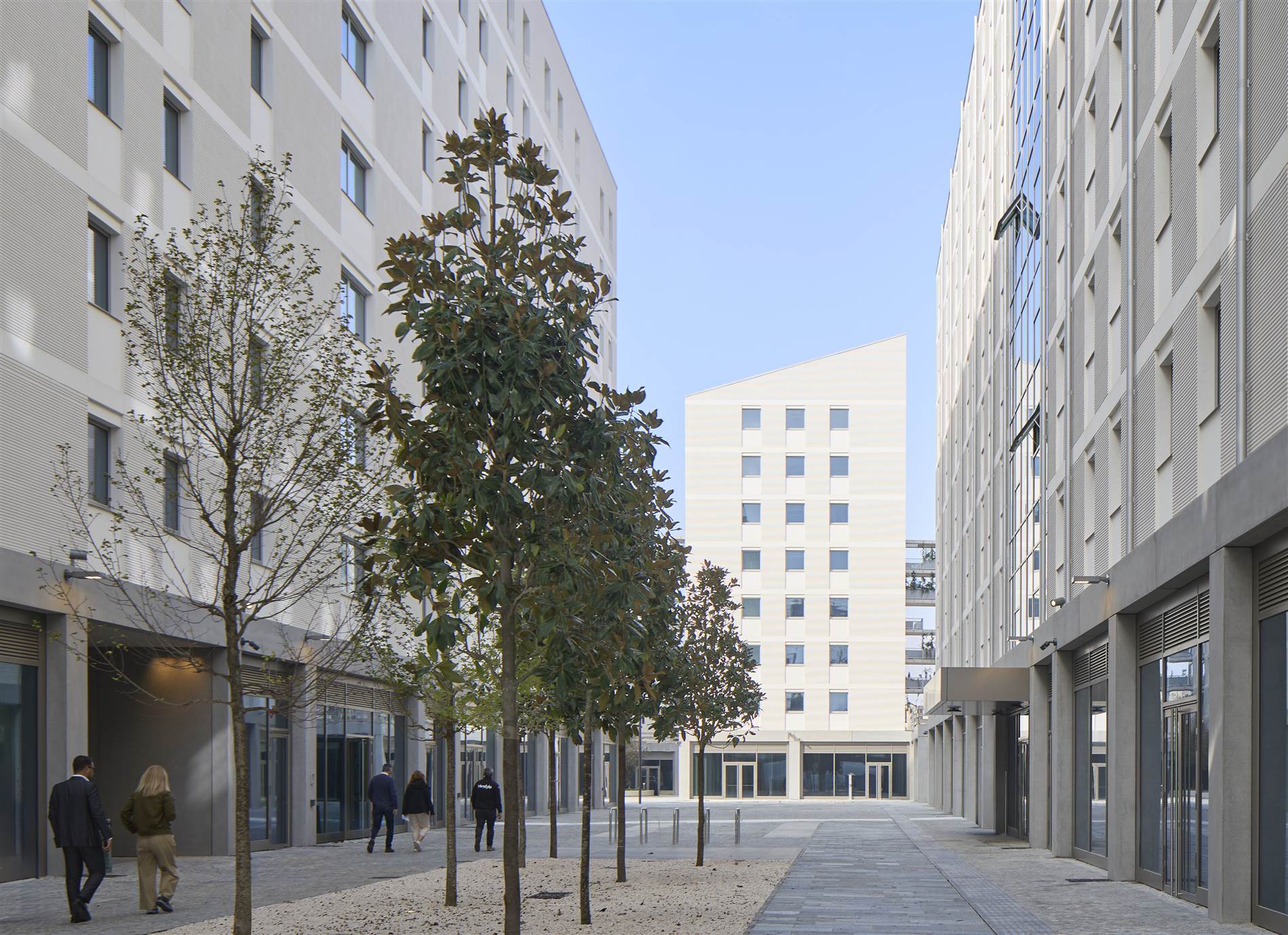 Por otro lado, las escaleras y pasajes exteriores de los edificios residenciales fomentan la conexión entre residentes, además de facilitar la actividad física, que se complementa con gimnasios, instalaciones deportivas al aire libre y las terrazas ajardinadas.