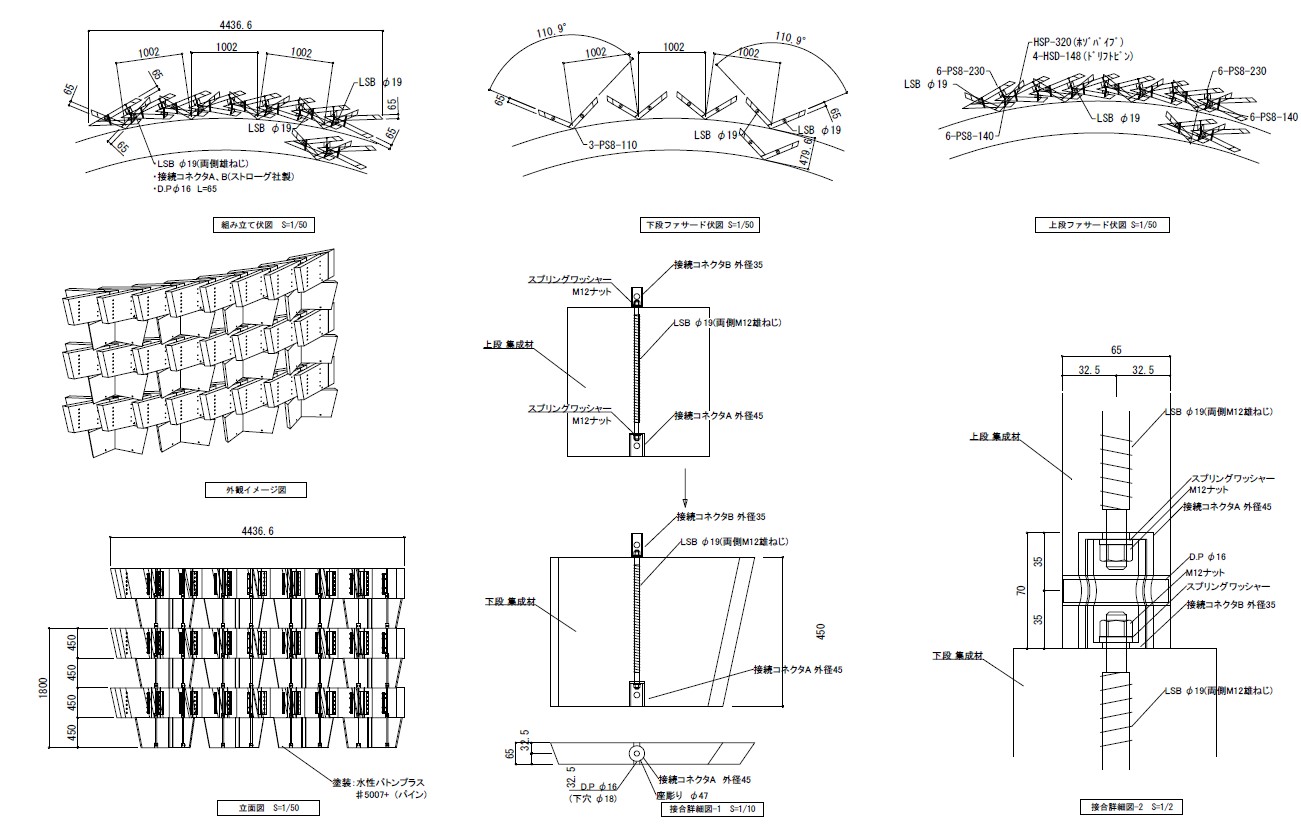 El segundo objetivo —concebir una estructura autoportante con herrajes invisibles— estaba directamente vinculado tanto a exigencias estructurales como a la integridad material de la madera. Algunos de los muros alcanzan los 13 metros de altura y están expuestos a las exigentes condiciones sísmicas de Osaka. En lugar de concebir la fachada como un revestimiento suspendido de una estructura independiente, se optó por hacerla trabajar como un sistema portante en sí mismo. La producción se llevó a cabo en Kagoshima, al sur del archipiélago japonés, en el taller de Yamasa Mokuzai, donde cada módulo fue mecanizado individualmente mediante control numérico. Este proceso permitió integrar los herrajes estructurales en el interior de las piezas y garantizar la precisión dimensional requerida por el sistema, condición indispensable para asegurar la continuidad estructural y la correcta alineación del conjunto durante el montaje en obra.