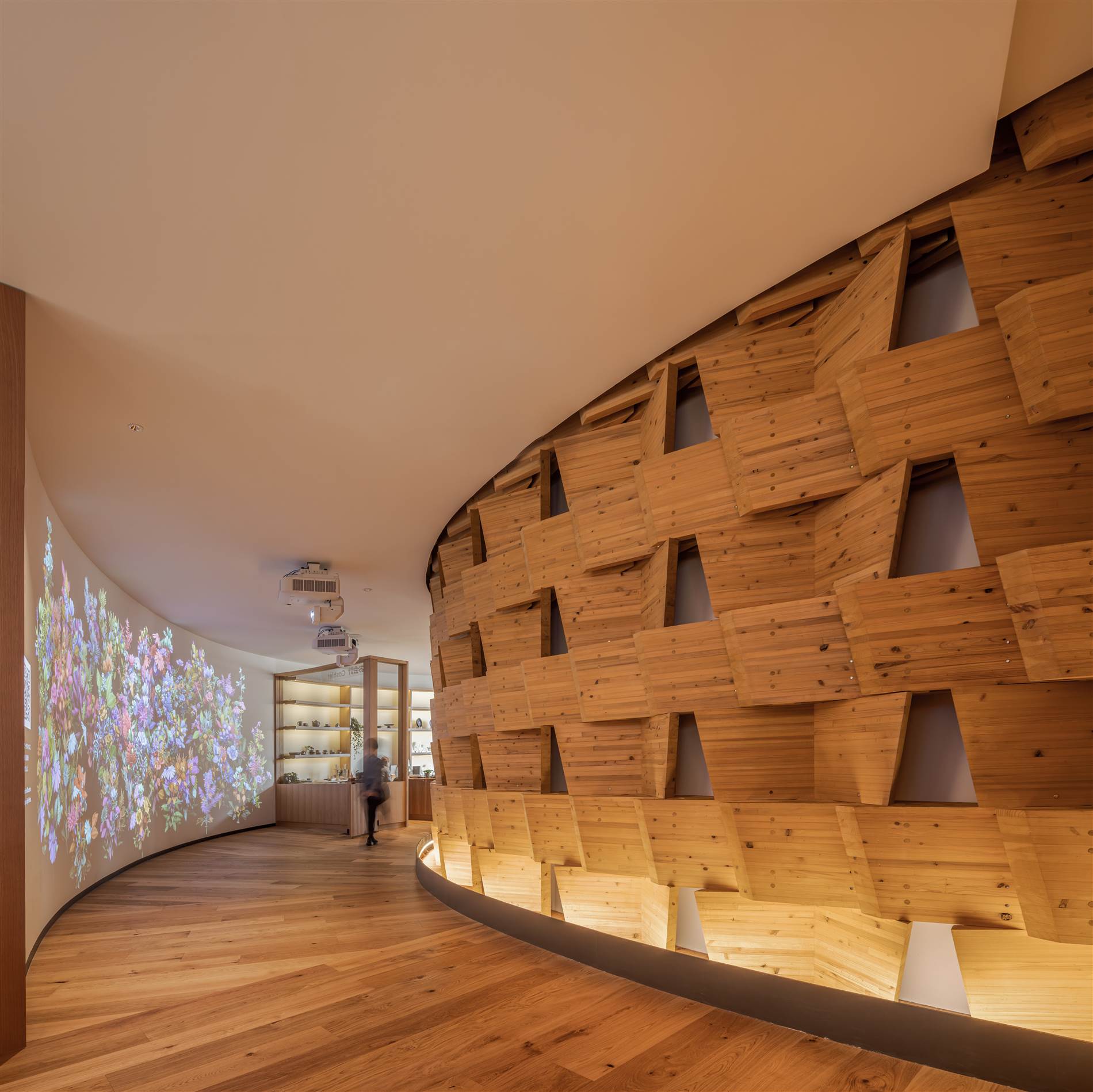 La geometría de la espiral no es solo un gesto formal, sino una herramienta espacial que organiza la secuencia expositiva y favorece una experiencia progresiva de descubrimiento.