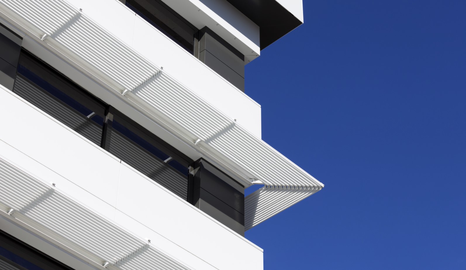 Esa abstracción del edificio en su lenguaje formal resulta clave para aparentemente reducir el impacto volumétrico, puesto que se prescinde de elementos habituales de la escala humana y por lo tanto resulta complejo poner en contexto la totalidad del edificio. La fachada oeste que se proyecta como un plano continuo blanco perforado que evita la radiación directa de las últimas horas de la tarde coincidente con el momento de mayores cargas interiores.