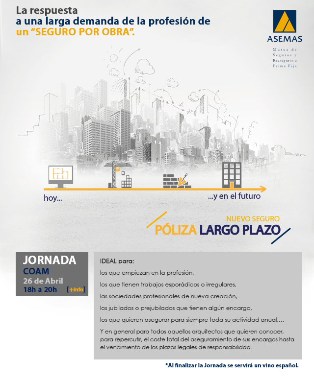 ASEMAS presenta hoy un nuevo producto que responde a una clara demanda de la profesión, un seguro que se adapta a la actividad desarrollada por el profesional y que, por lo tanto, es muy interesante para aquellos que empiezan en la profesión, los que tienen trabajos esporádicos o irregulares, las sociedades profesionales de nueva creación, los jubilados o prejubilados que tienen algún encargo, los que quieren asegurar para siempre toda su actividad anual,..
