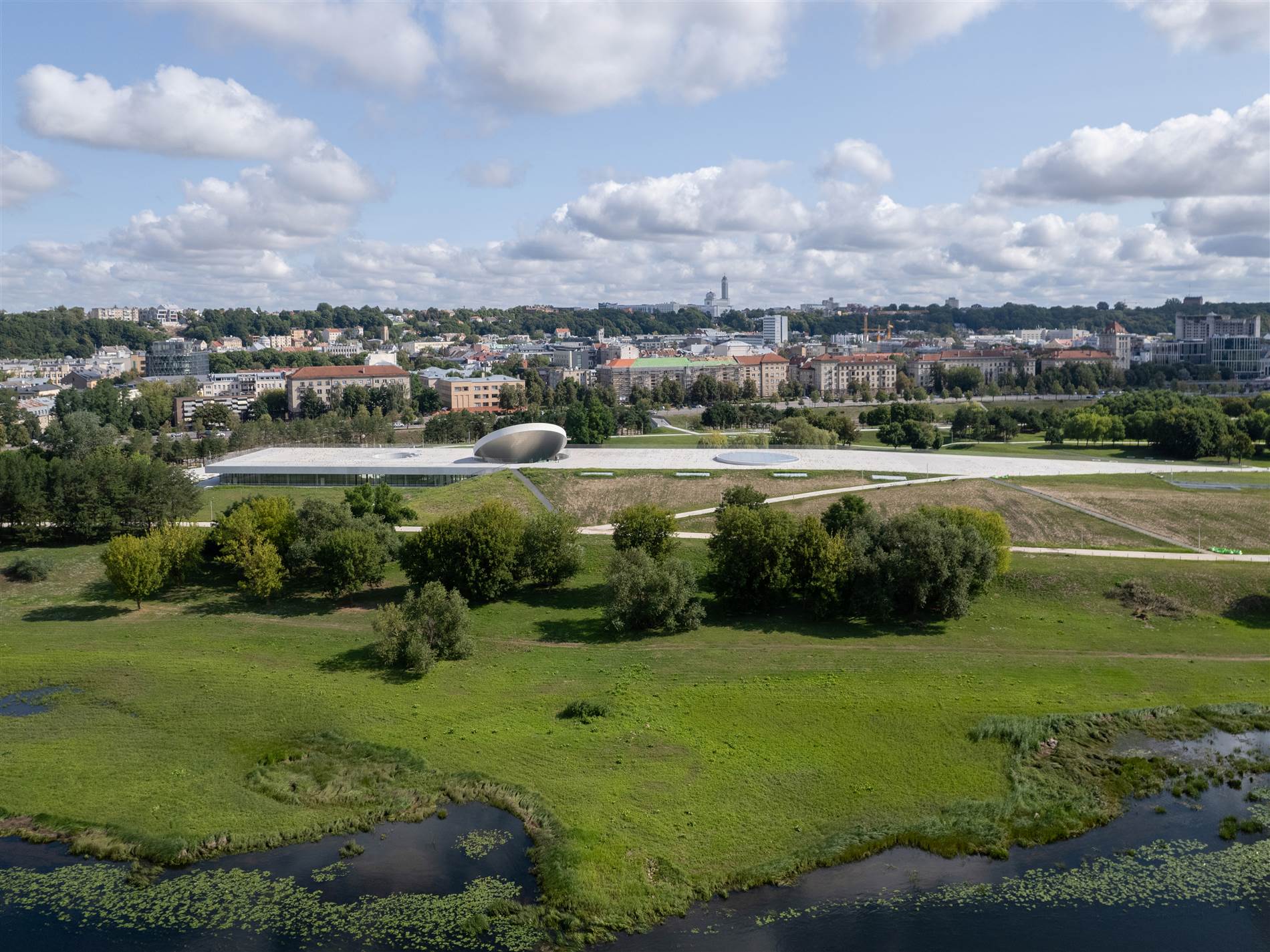 El museo, de 15.000 metros cuadrados, se integra de forma orgánica con la topografía de la isla, buscando una continuidad fluida entre arquitectura, naturaleza y ciudad.