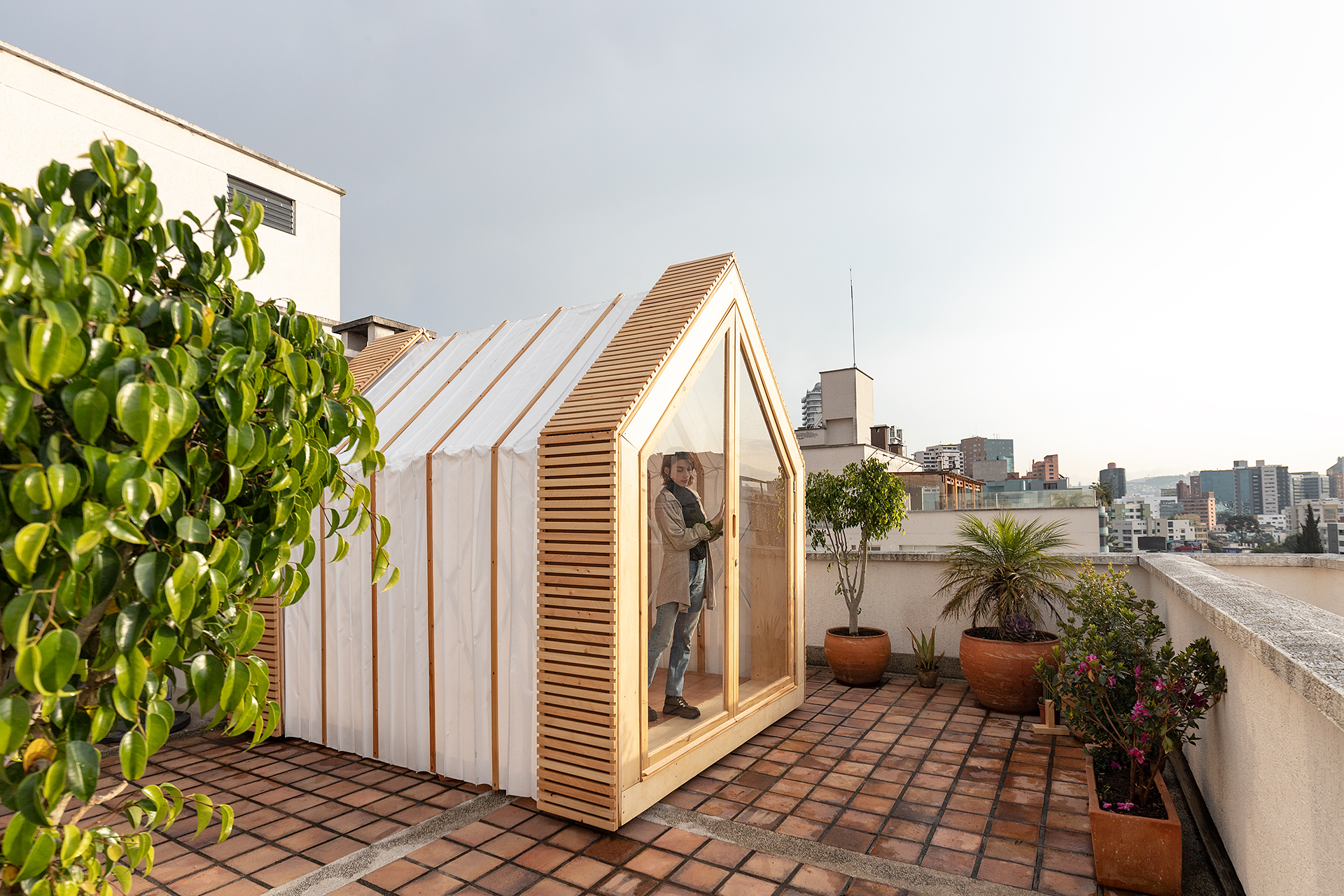 Juan Ruiz y Amelia Tapia, los arquitectos fundadores de IWI Studio, se mueven con confianza en el desarrollo de elementos que se transforman para ofrecer las máximas posibilidades de uso a los programas para los que sirven, como fue el diseño de un mueble que al desplegarse como un acordeón crea un espacio protegido, que dio nombre al despacho, o esta propuesta que redefine una oficina en Quito, en cuyo desarrollo también participa el equipo de TEC Taller.