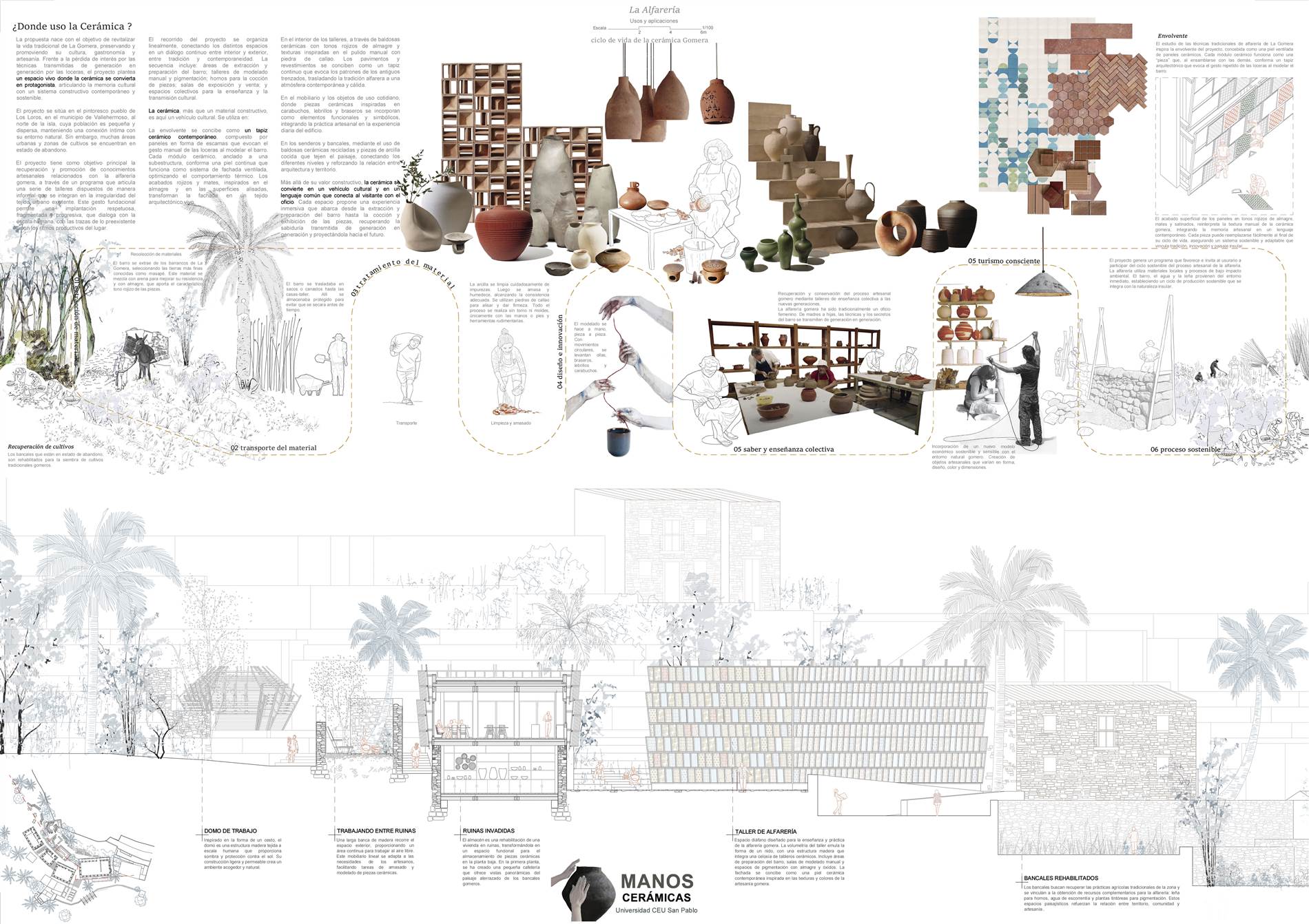 El jurado destaca que el proyecto constituye un auténtico homenaje a la cerámica, en un amplio sentido, entendida en toda su amplitud y vinculada de forma profunda a la tradición local. La propuesta demuestra una comprensión del proceso cerámico, utilizándolo como elemento articulador del espacio y como hilo conductor de un recorrido que recupera y revitaliza los vacíos y ruinas del pueblo de Los Loros, en La Gomera. Se valora especialmente el cuidado estudio de composiciones y patrones, capaces de generar ambientes dinámicos, así como el respeto de la arquitectura tradicional, concatenando talleres de artesanos donde la cerámica es protagonista.