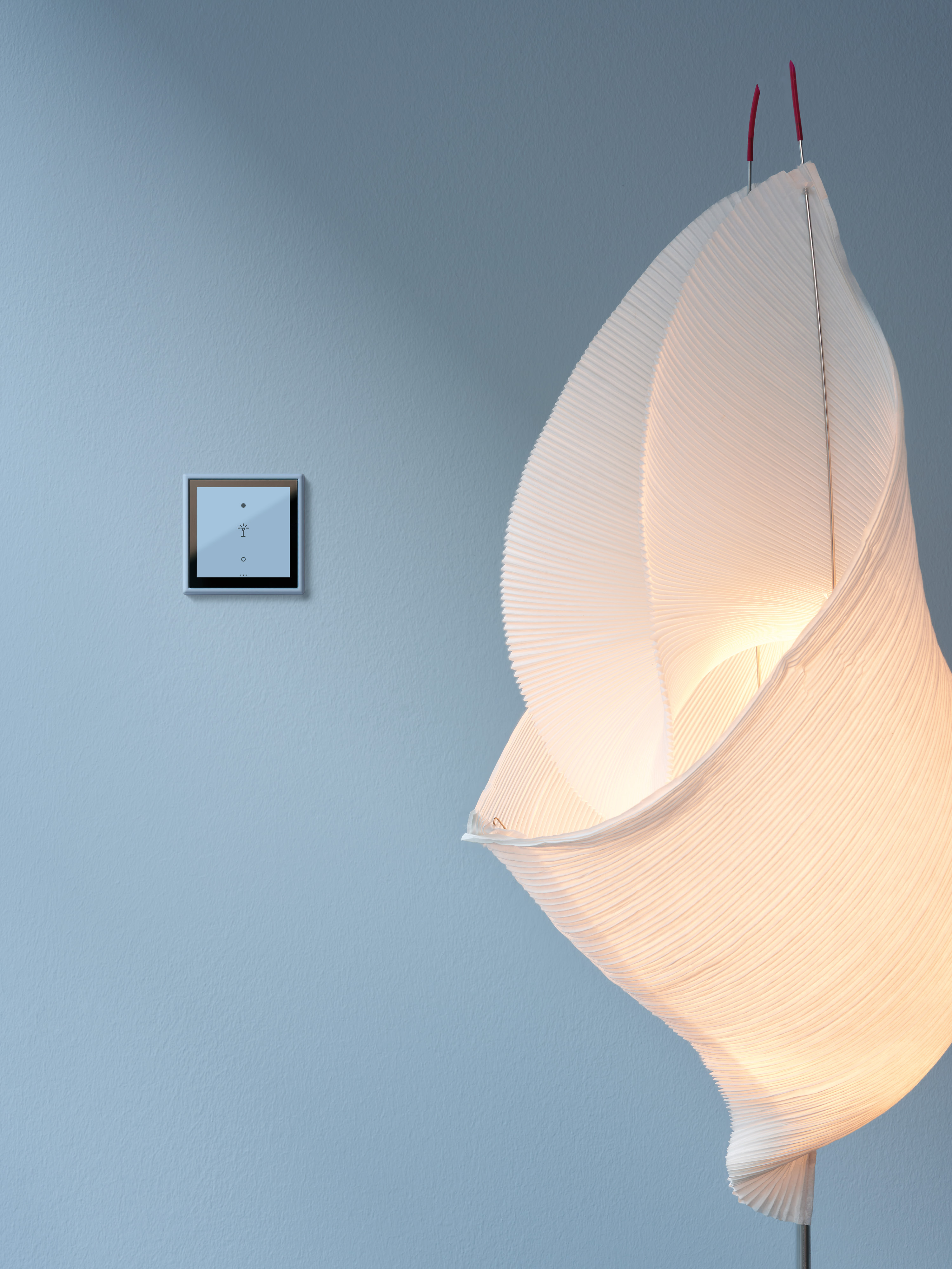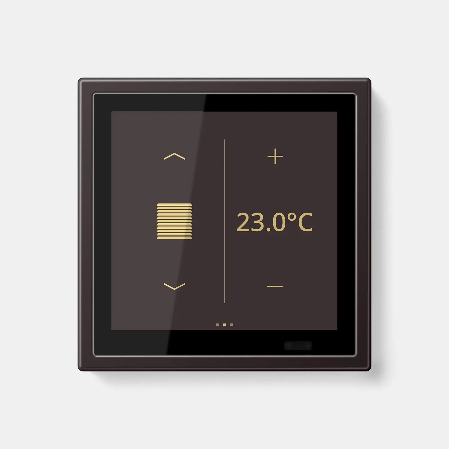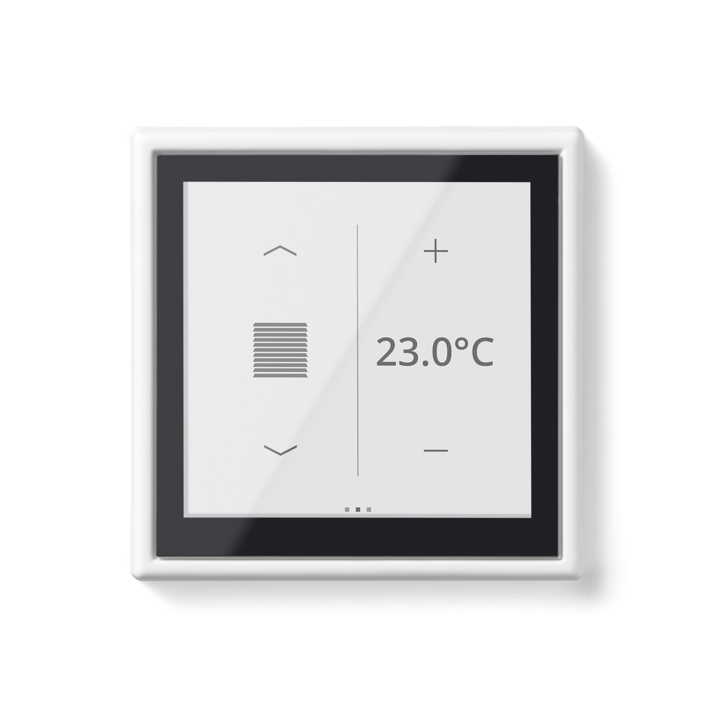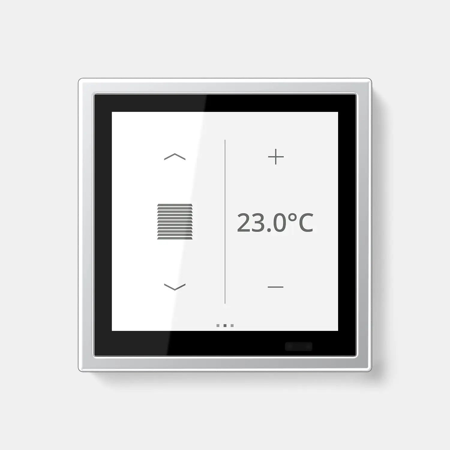 El controlador se integra en los marcos de programas icónicos de JUNG, como LS 990 o LS ZERO. Esta compatibilidad asegura una coherencia estética total de la instalación eléctrica en todo el espacio.