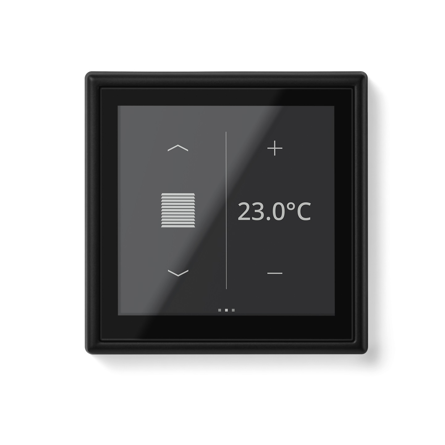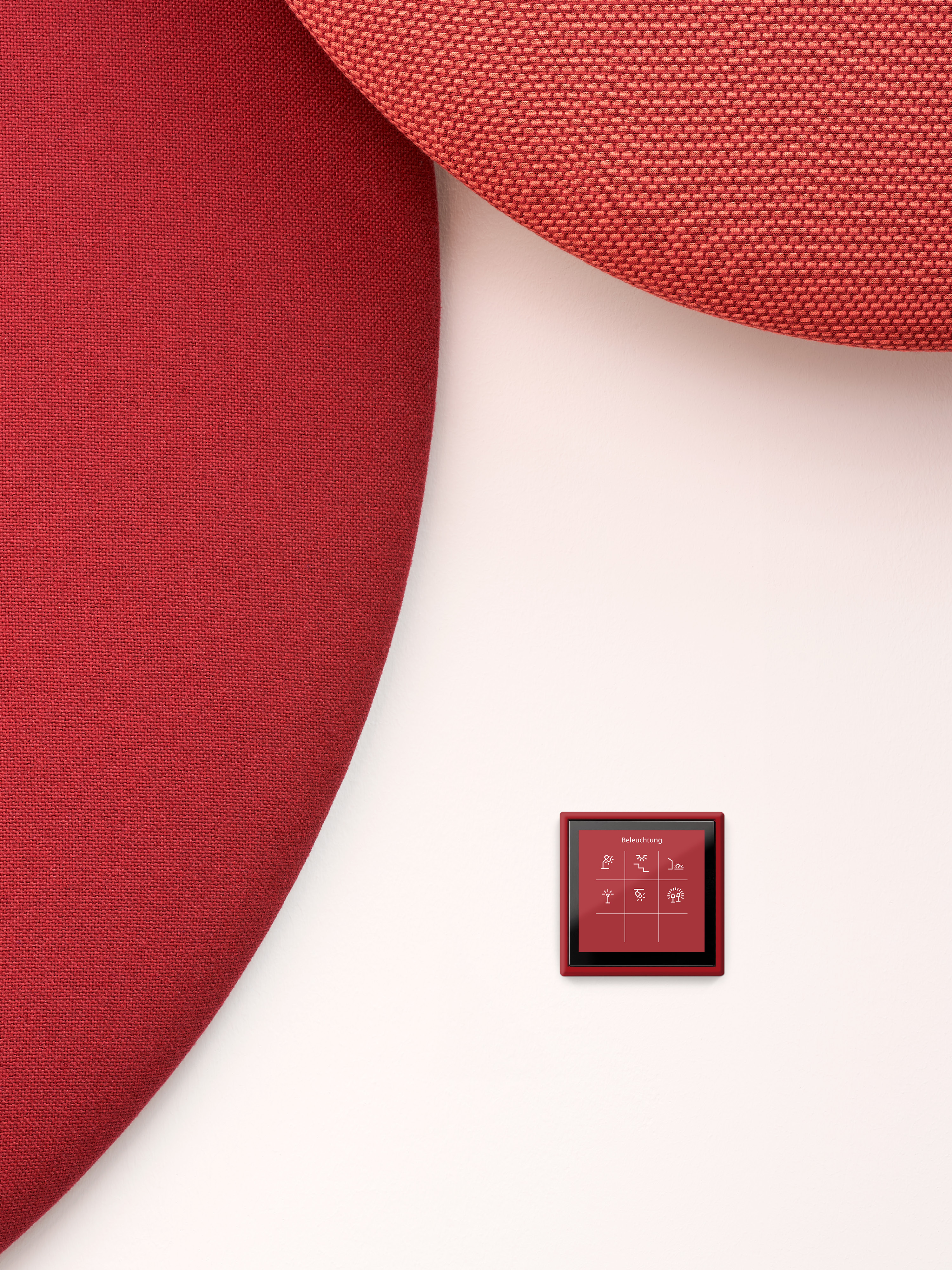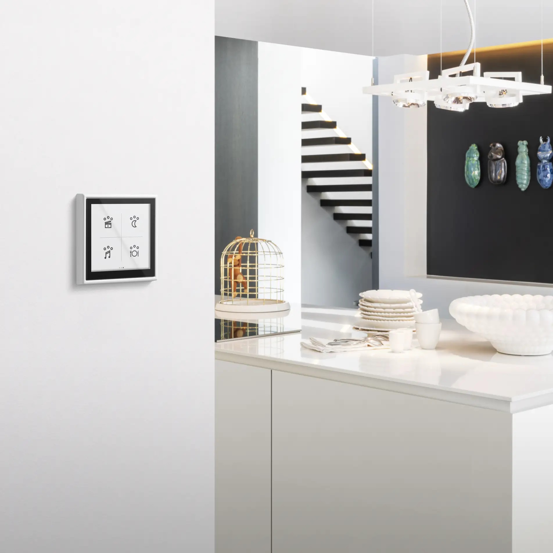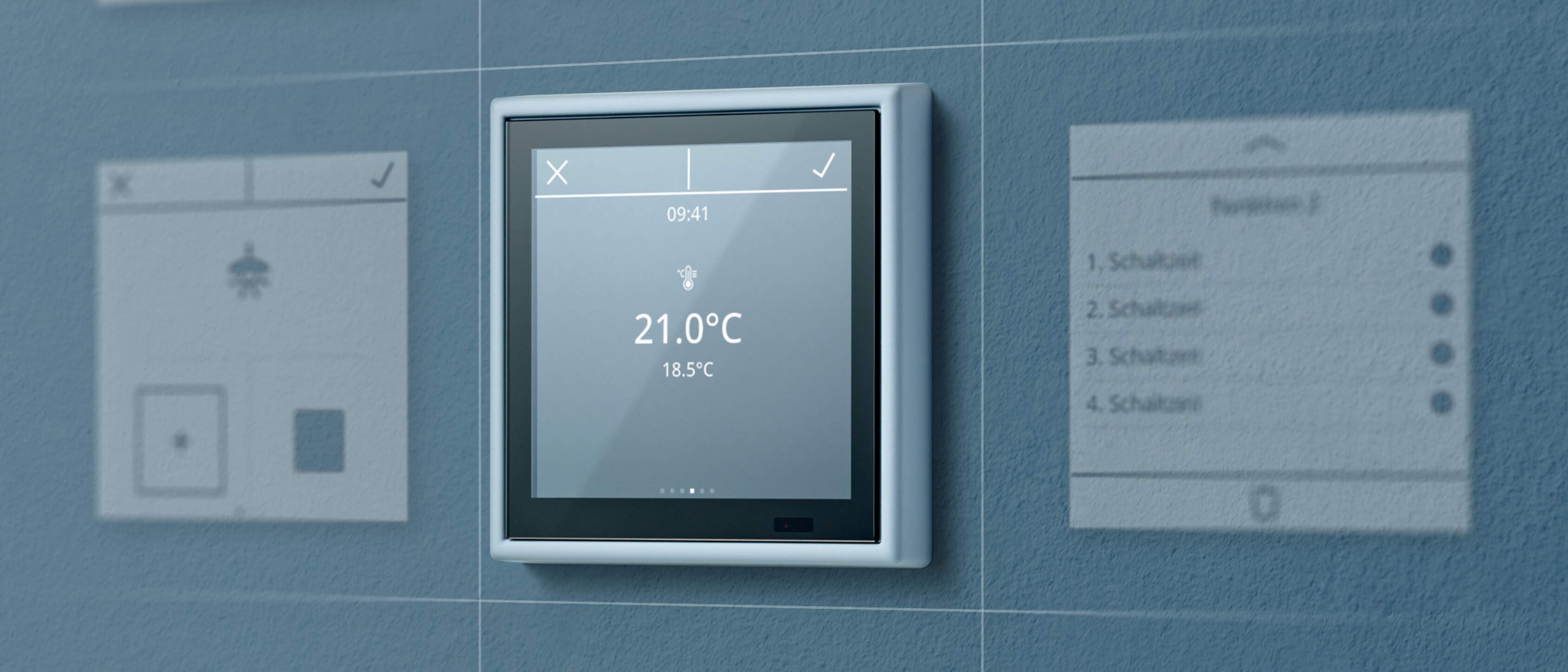 El controlador se integra en los marcos de programas icónicos de JUNG, como LS 990 o LS ZERO. Esta compatibilidad asegura una coherencia estética total de la instalación eléctrica en todo el espacio.