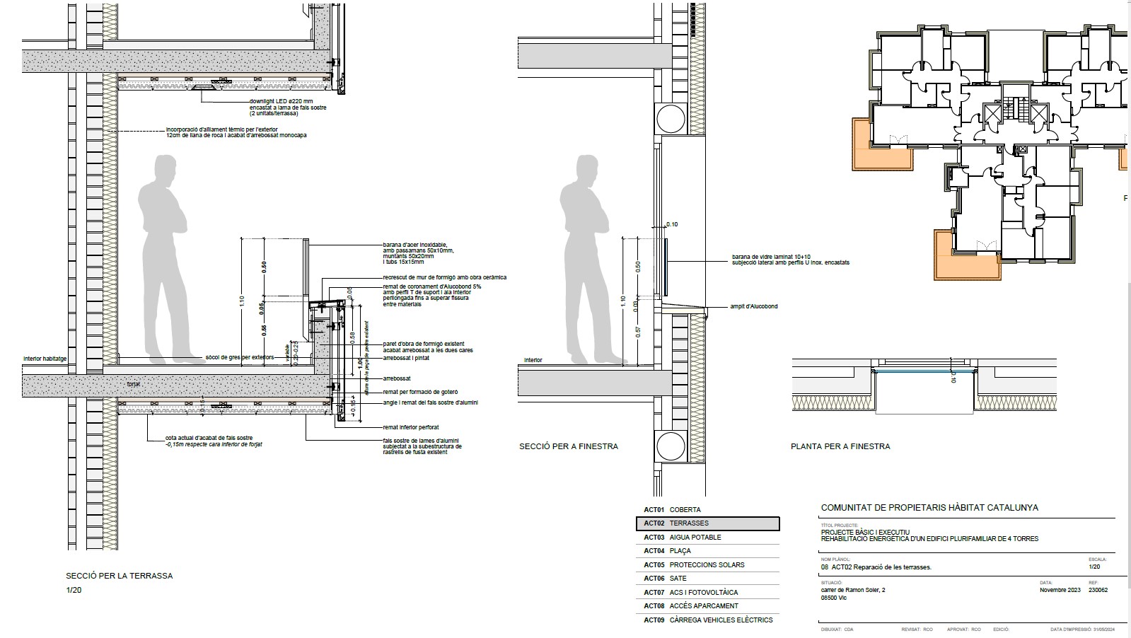 Sección por la terraza y fachada con ventana. Ver pdf.