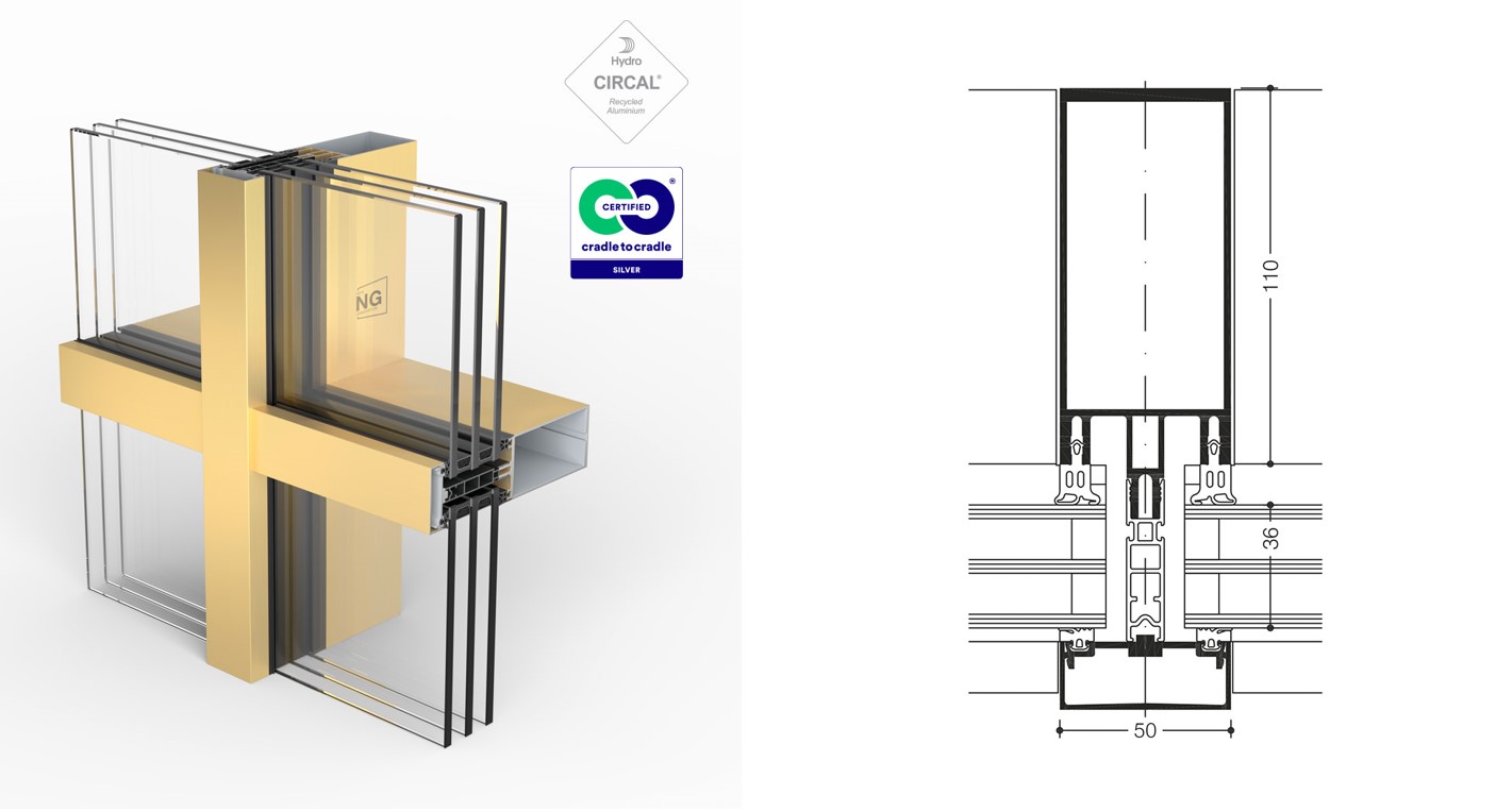 Un sistema modular de montantes y travesaños, con un mínimo perfil visto (50 mm) y una profundidad de perfiles, que oscilan entre los 50 y los 260 mm, que facilitó un montaje ágil y que permite, además, el desmontaje y la reciclabilidad futura de los materiales. La ampliación de los huecos a través de esta solución incrementó significativamente la superficie acristalada y la transmisión luminosa al interior.