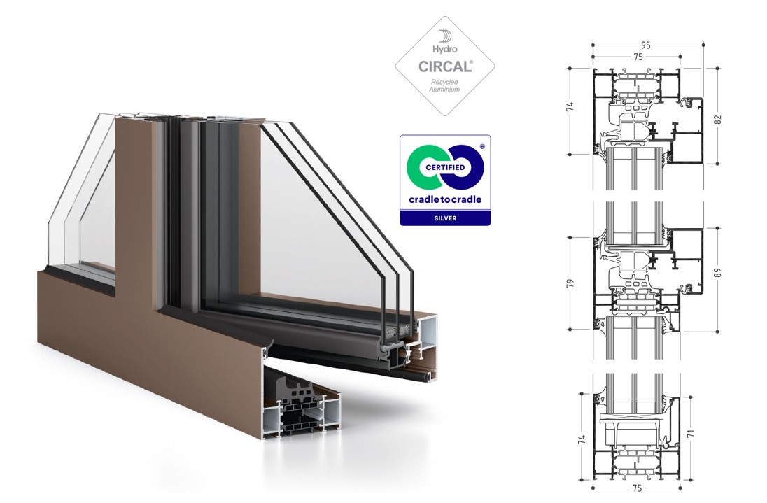Este material garantiza que, al menos, el 75% del aluminio proviene de chatarra posconsumo. La diferencia en el impacto es notable: Hydro CIRCAL® 75R tiene una huella de carbono de 1,9 CO2eq. /kg de aluminio, contrastando con la media europea de aluminio primario, que se sitúa en 10 CO2eq. /kg. El uso de este aluminio no solo optimiza la eficiencia energética del edificio, sino que también promueve activamente la circularidad del complejo.