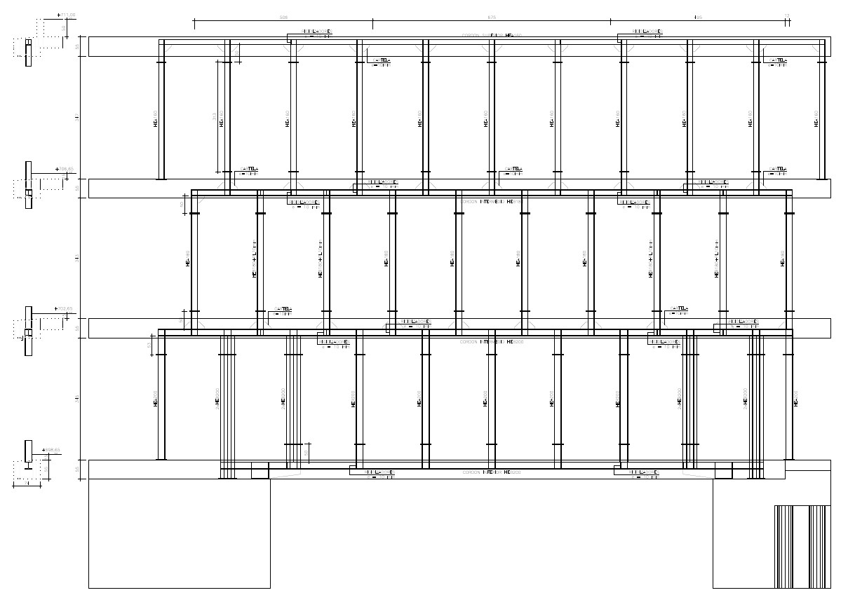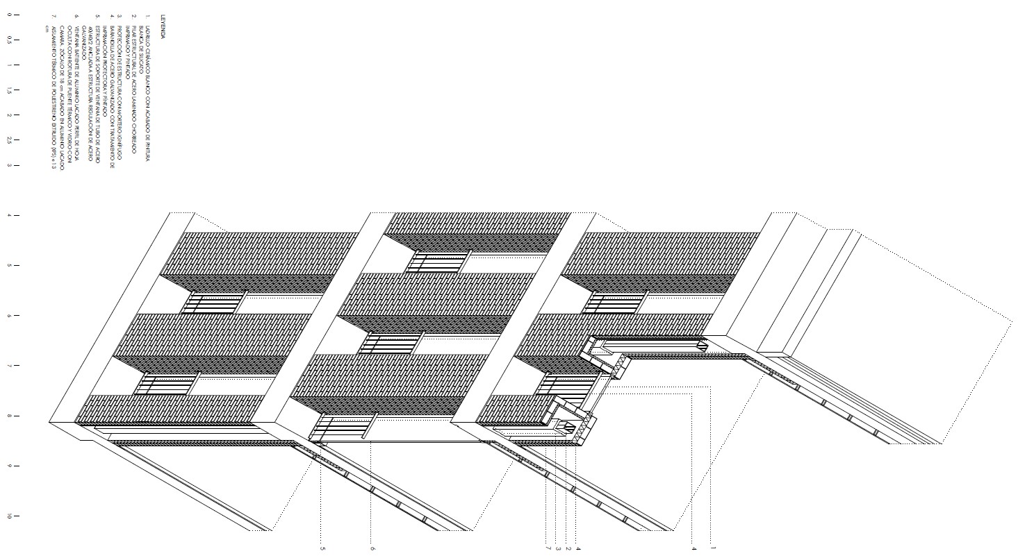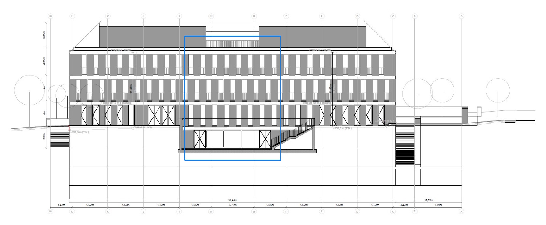 Estructura fachada noreste con pilares de acero y viga vierendeel. Ver PDF