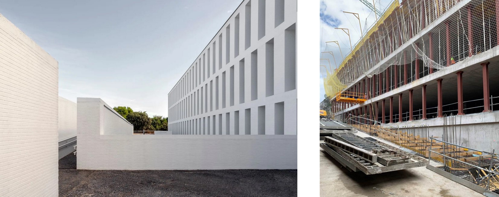 ET: Hay que tener en cuenta un dato: este es el edificio más barato que hemos hecho por metro cuadrado en nuestra vida: 800 € el metro cuadrado, con alturas de 10 y 12 metros. El ladrillo que inicialmente teníamos era un ladrillo caro. Y lo que hicimos es elegir uno barato, que se pinta con esta pintura que no es tan cara y que, además, se ha demostrado que tiene un mantenimiento muy sencillo.