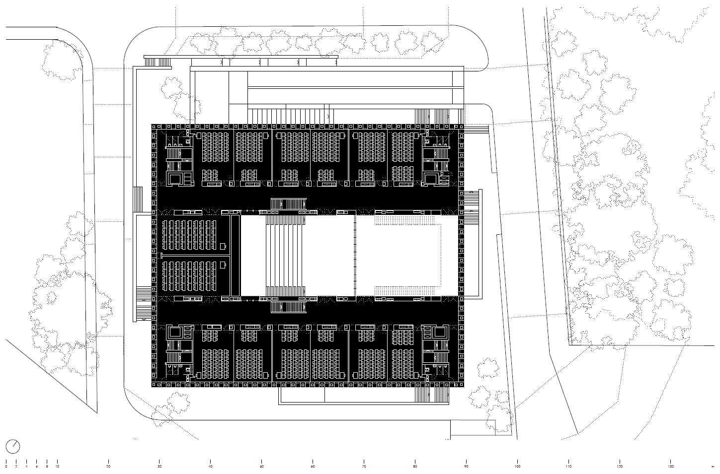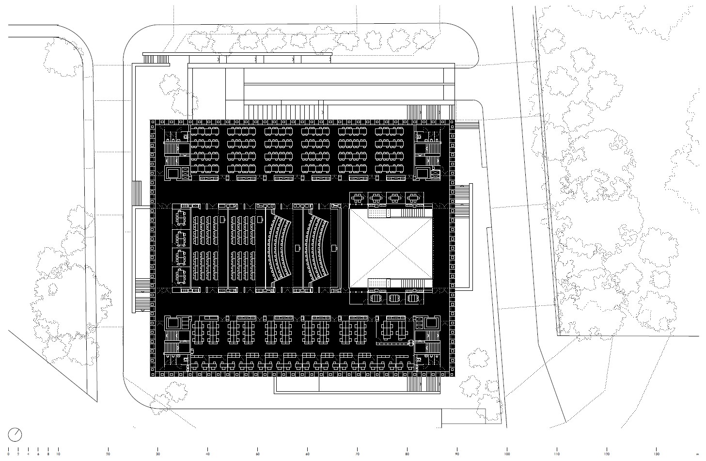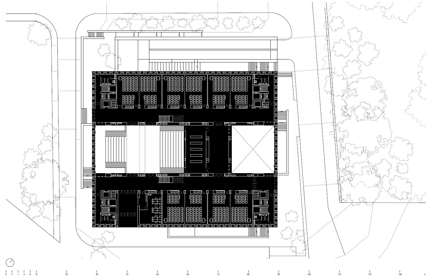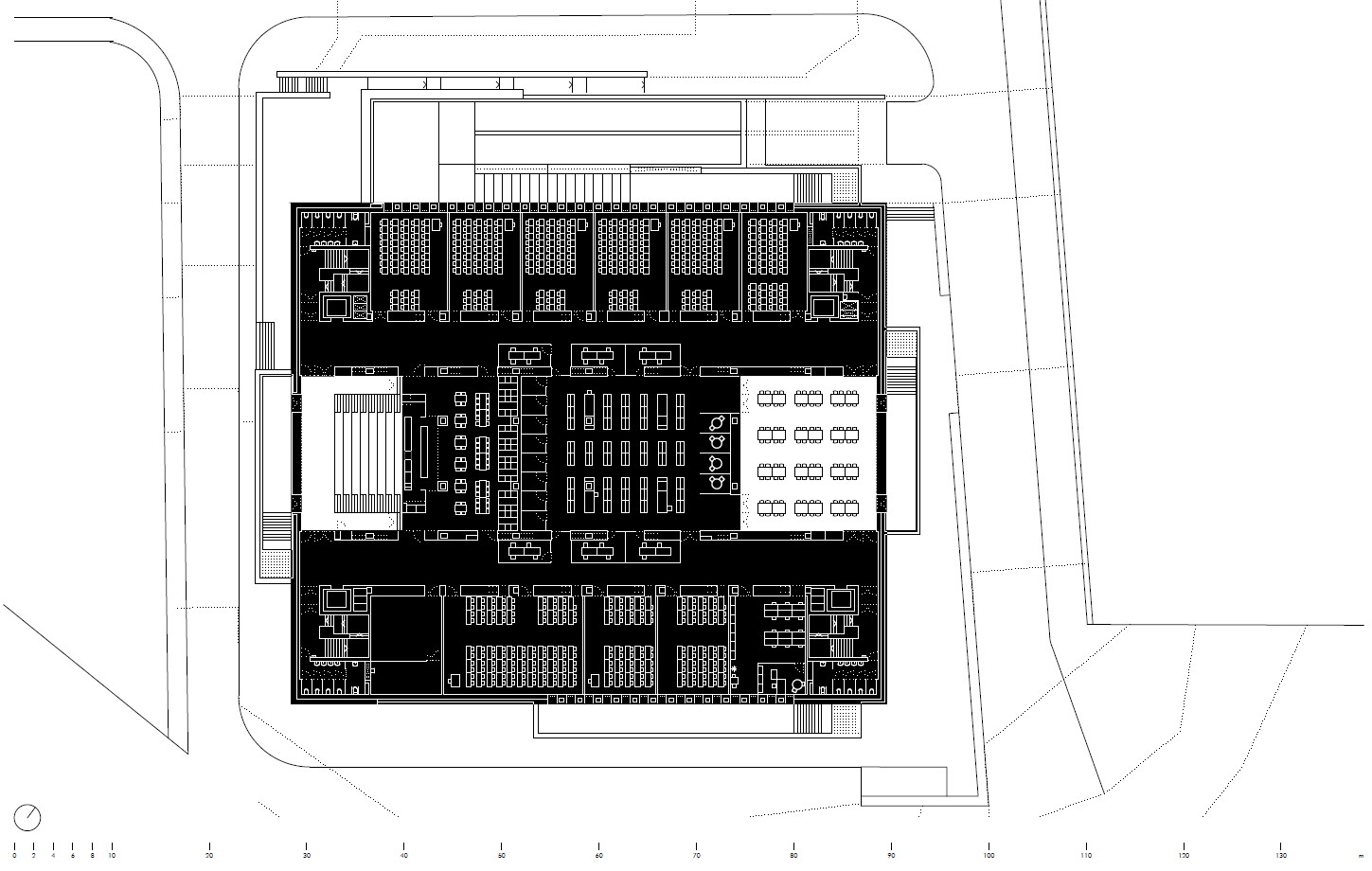 Tectónica: Estamos ante un edificio que inicialmente estaba previsto como biblioteca universitaria que tiene una formalidad muy rotunda y nos gustaría comenzar con una frase de la memoria del proyecto que puede aportar muchas claves: “Un edificio para la enseñanza es un palacio” ¿En qué sentido lo planteáis?