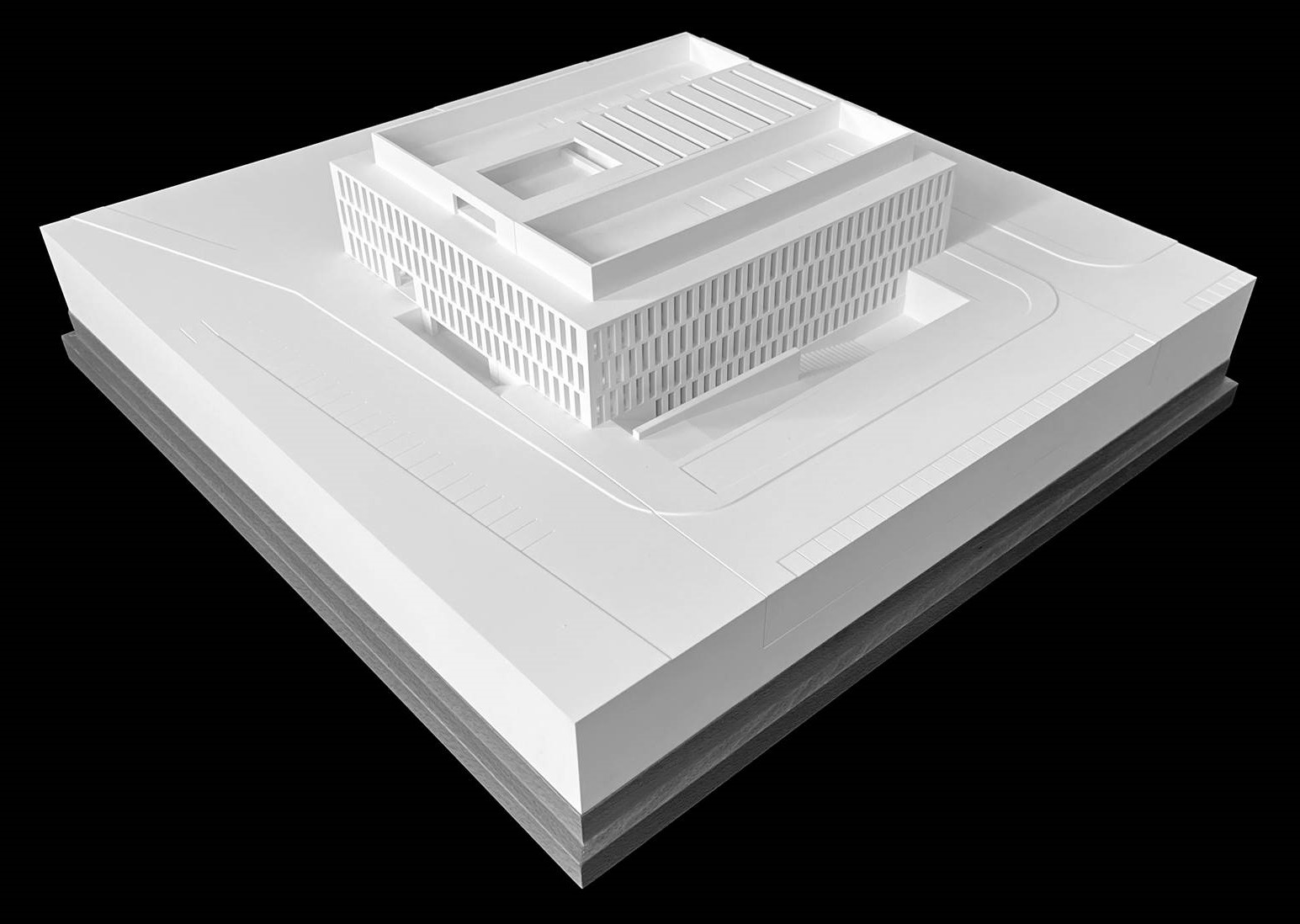 ET: El campus de la Francisco de Vitoria empezó siendo de ladrillo, unas construcciones que al principio me parecieron más anodinas y con el tiempo las acabo viendo más interesantes. Y luego, todas las intervenciones nuevas que se han ido incorporando son blancas: el polideportivo de Alberto Campo, la arquitectura de Felipe Samarán, que ha estado siempre muy involucrado en la construcción del campus, o Bjarke Ingels ahora,y pensamos que, en la intersección de las dos calles, de los dos ejes, tenía que haber algo de ladrillo, pero blanco.
