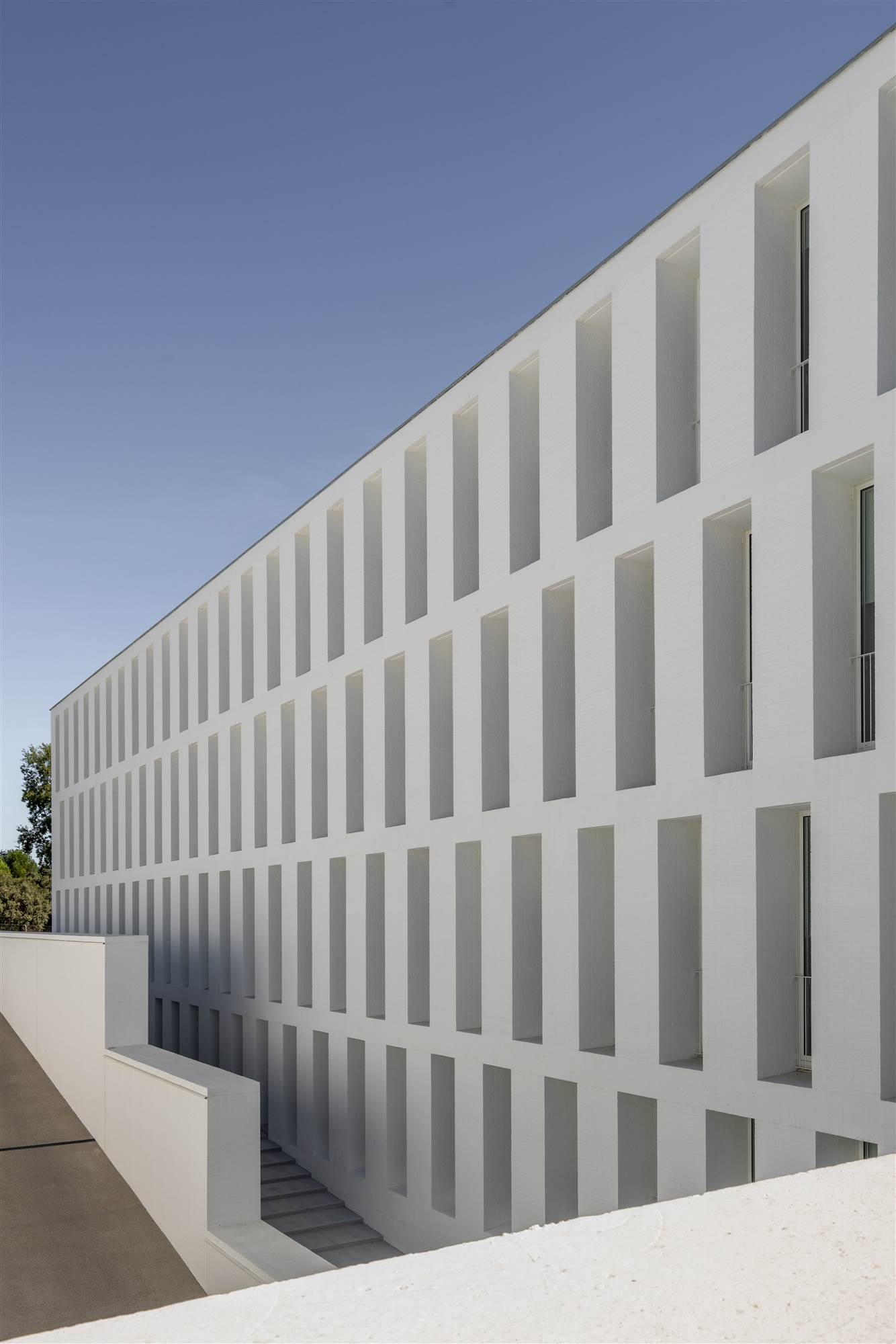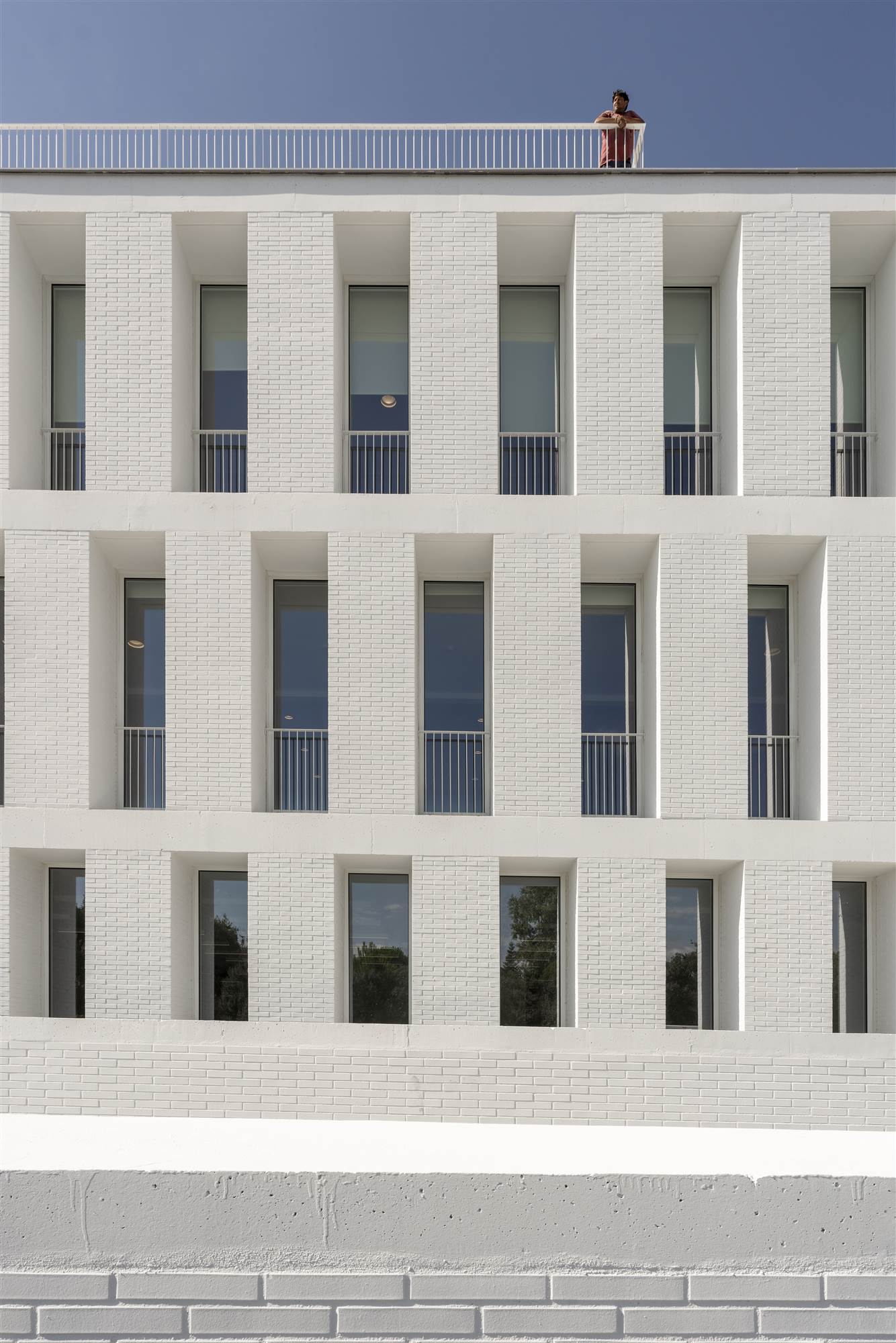 T: En cuanto a soluciones constructivas, llama la atención que el ladrillo de fachada está pintado, que cambia por completo la percepción porque cubre todo por igual, ladrillo y llaga. ¿Se debe a una cuestión de mantenimiento?