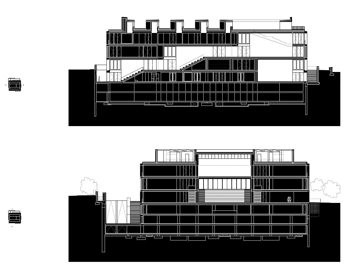 Cuando nos encargaron el proyecto, las normativas del lugar y las posibilidades del solar daban un rectángulo que está llevado al límite de su edificabilidad, como se supone de una institución privada. Hay una normativa curiosa que establece un límite por abajo y otro por arriba. Es decir, el sótano no puede exceder cierta profundidad y la altura permitida no puede sobrepasar un límite. Entre esos dos límites, había que encajar las cuatro plantas de aulas universitarias con la biblioteca y las dos de aparcamientos. Realmente, al límite.