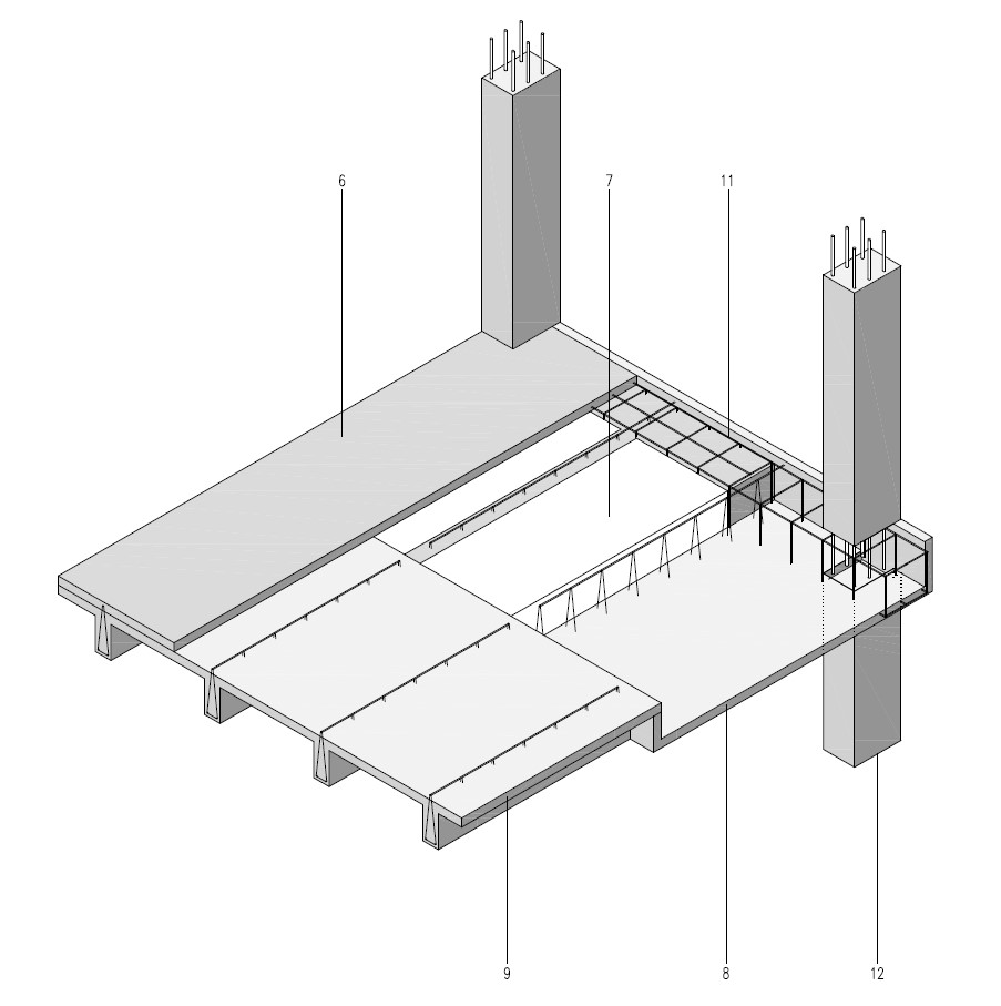 Axonometría forjado prefabricado. Leyendas en PDF con suscripción Premium.
