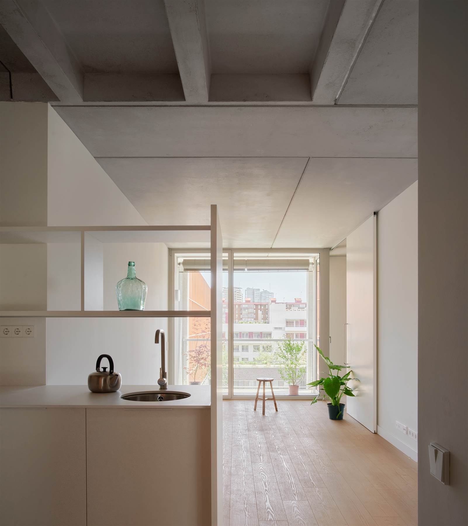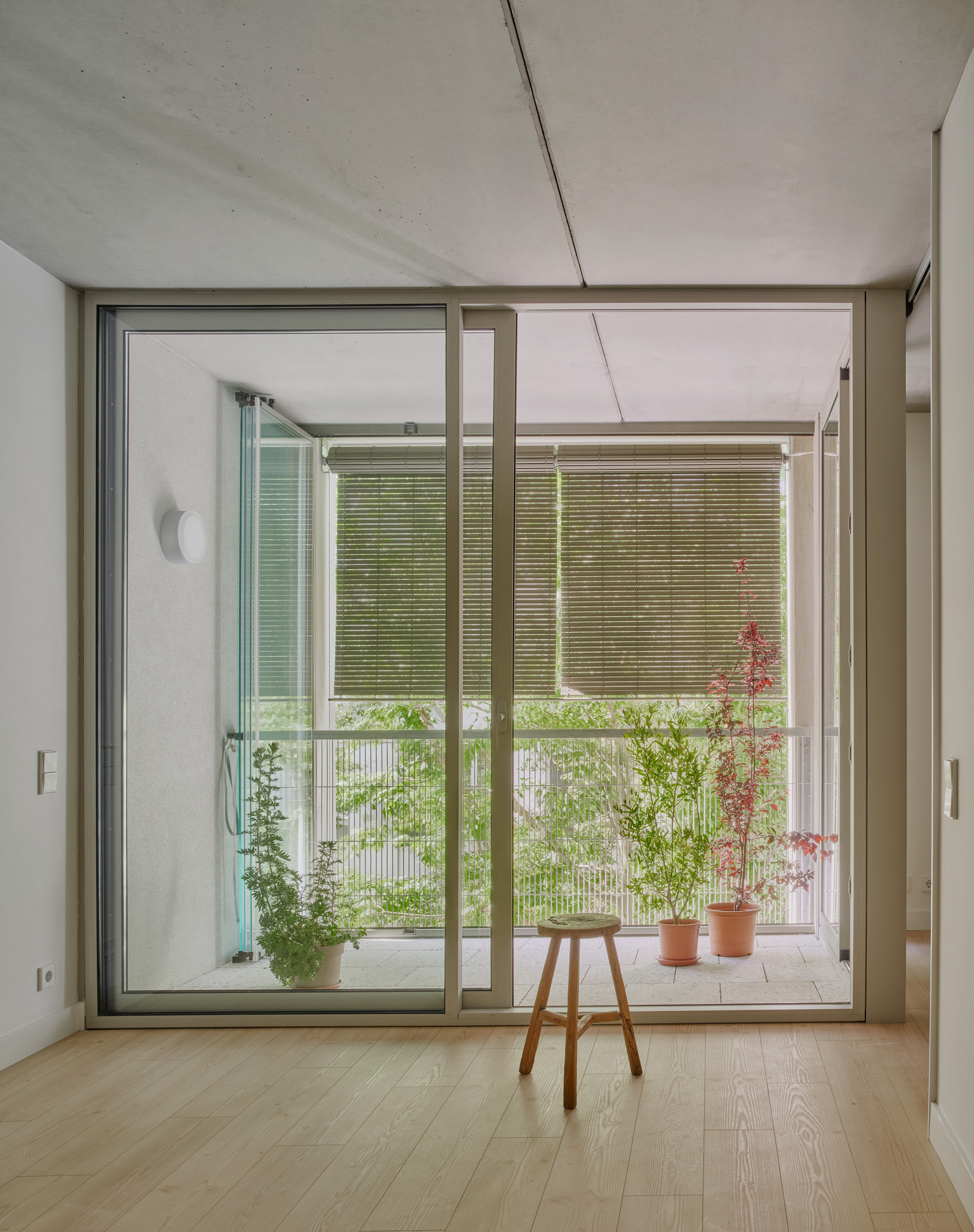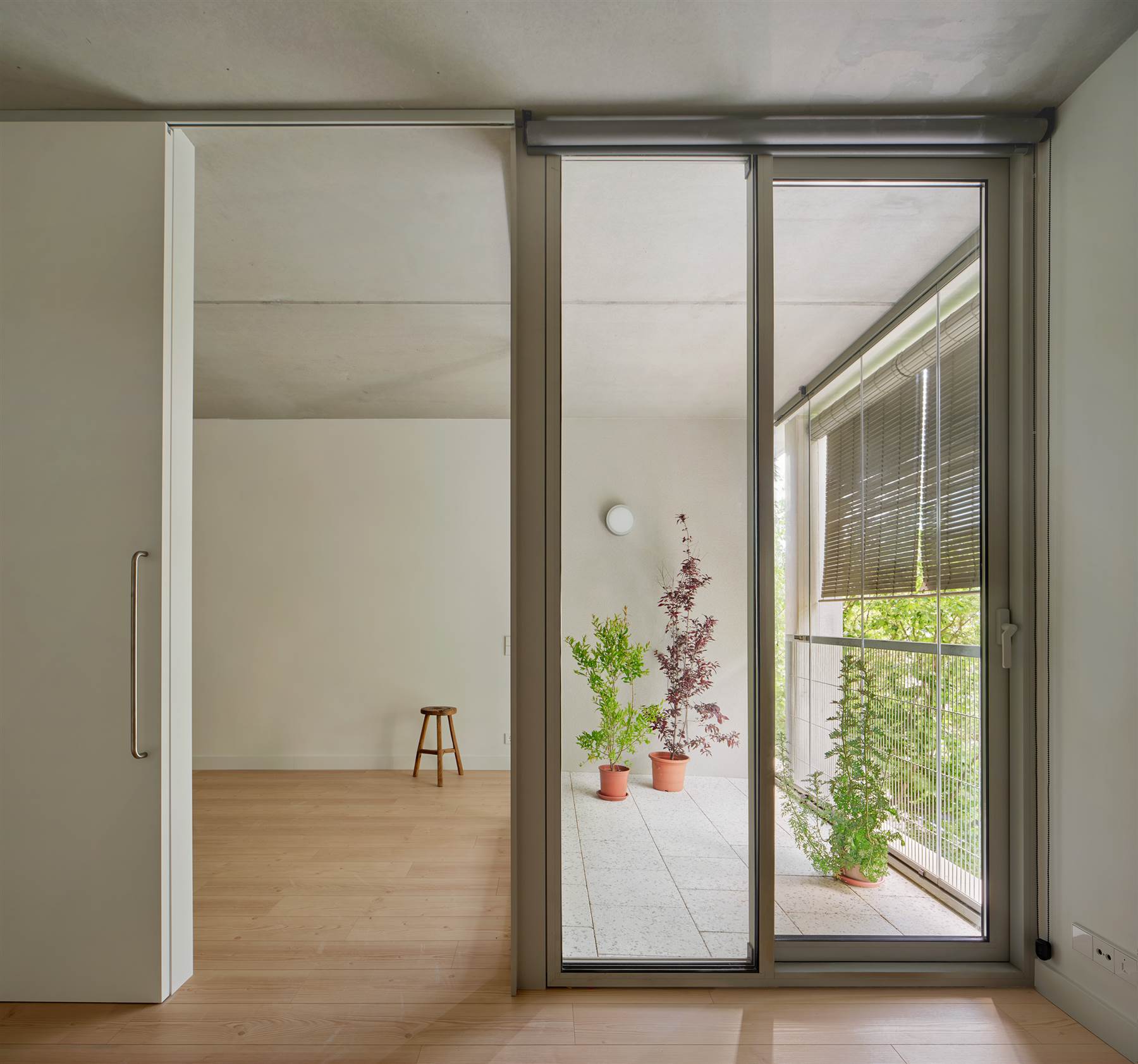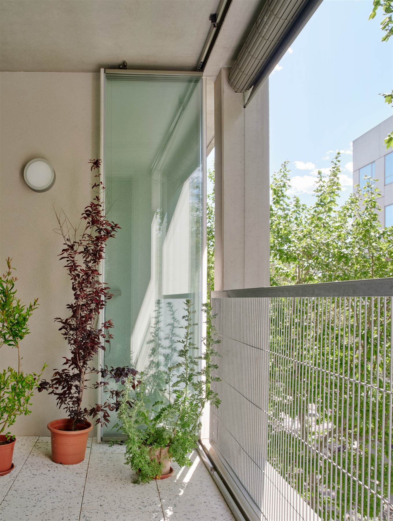Luego, en las plantas de alquiler social y de gente mayor hemos incorporado unos dispositivos que ya utilizamos en Son Servera, que son estos lugares intermedios previos a la puerta de entrada, que permiten ventilar sin abrir la puerta. Es entender que la entrada no es una línea, sino un espacio. Esto ayuda mucho a la relación social, porque es más fácil abrir estas puertas que las de la casa.