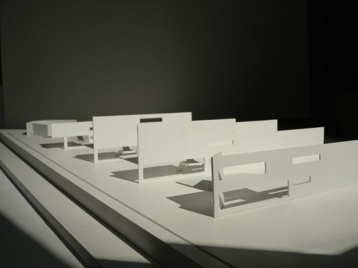 La comunicación visual entre los distintos módulos se materializa haciendo visibles los vestíbulos de cada uno de ellos. De esta manera, se comprende el conjunto desde el exterior cubierto del porche lineal.