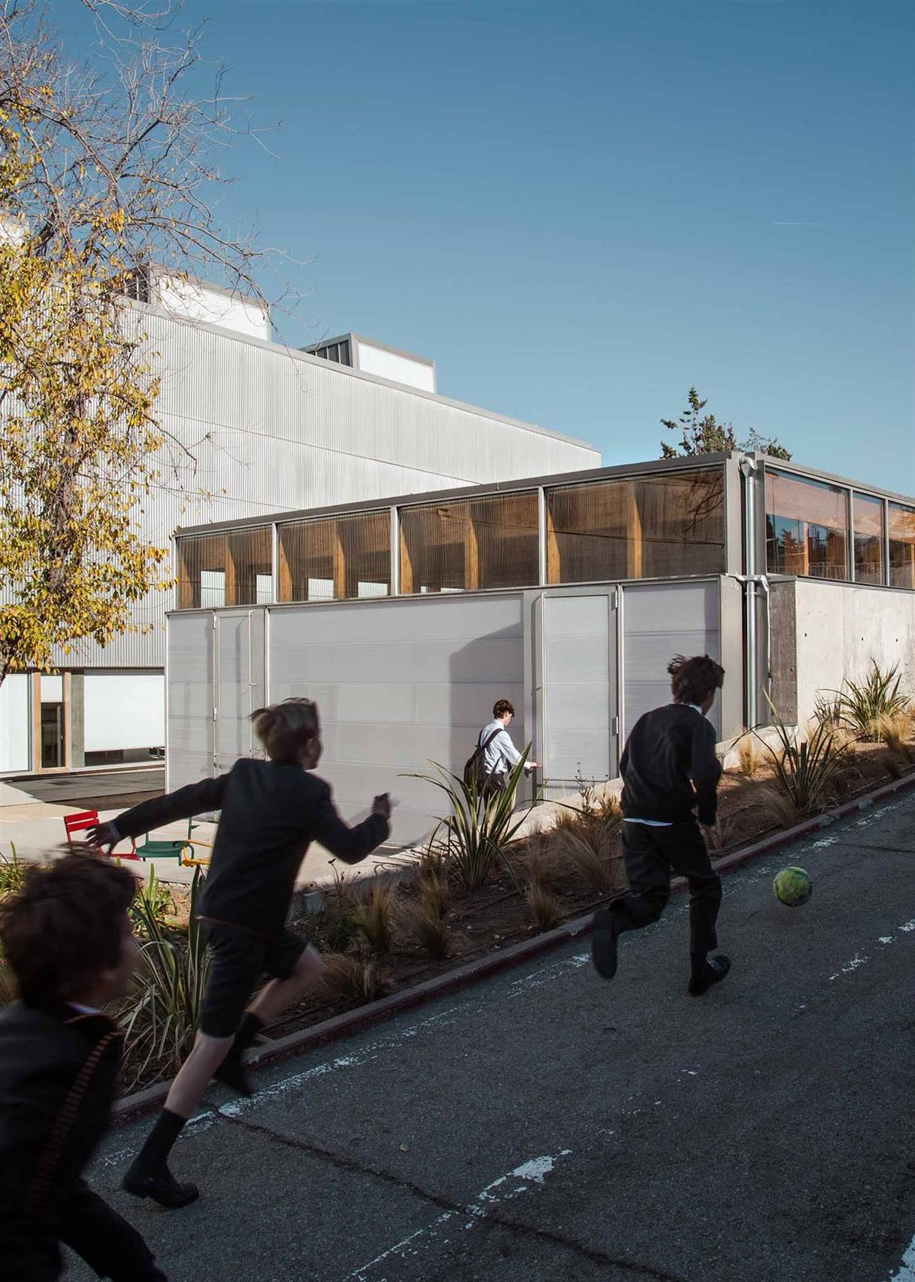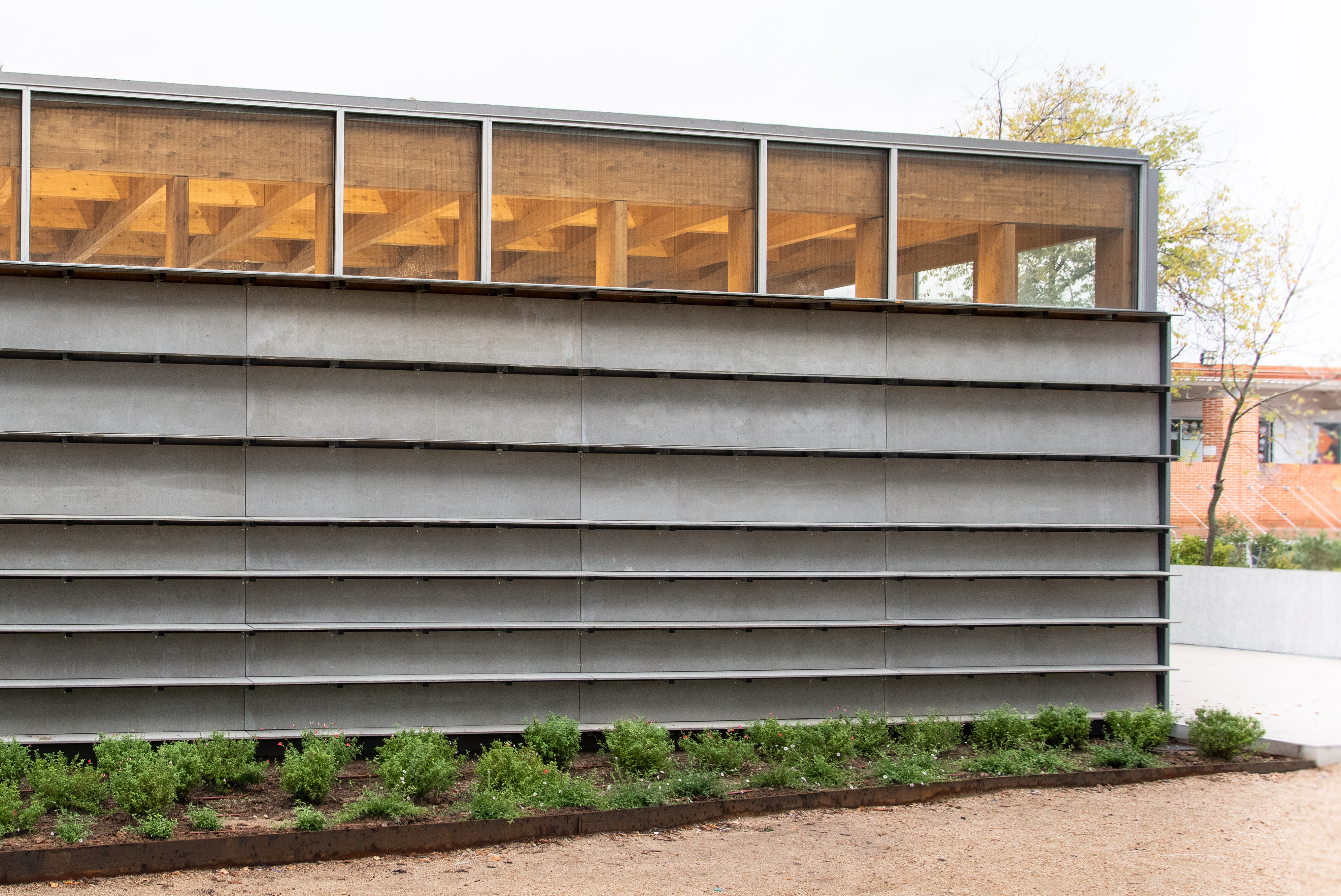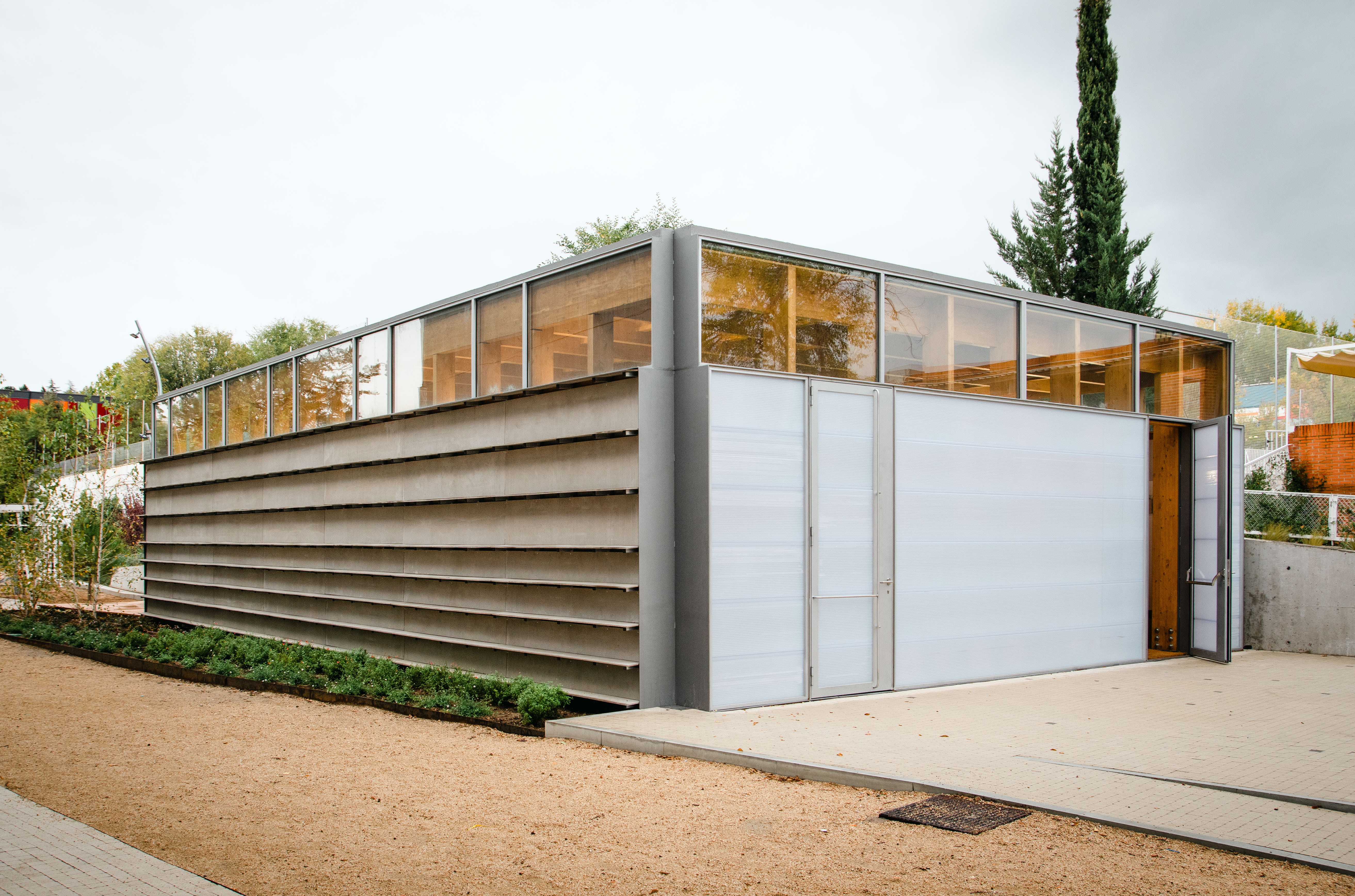 LR: Había varias cuestiones. Una muy importante es que esta pieza ni siquiera se construye en verano. Como es un edificio pequeño, se construye en los tiempos en los que no se da clase a lo largo de un año. Por lo tanto, tenía que ser prefabricada, hecha en un taller para montarse en seco.