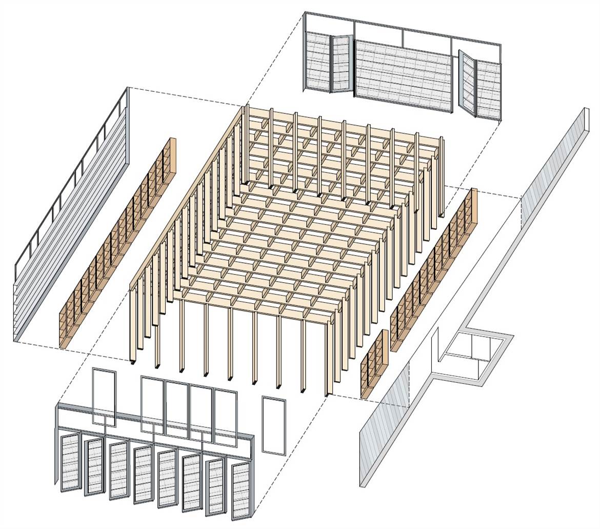Axonometría interior biblioteca. Ver PDF