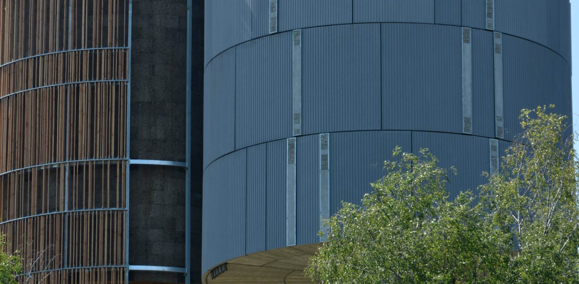 Los depósitos están enteramente aislados, están forrados con diez centímetros de corcho, porque no pueden estar a temperatura exterior. Esas son las condiciones técnicas, y a partir de ahí nosotros definimos el material de aislamiento, porque además queríamos que en determinados sitios quedase visto, y reflejara su condición de material natural, con manchas, cambios de color…, y sobre eso colocamos las pieles. Una piel prefabricada que es, entre comillas, más sencilla, porque es una cosa precisa, y la piel de madera. Esta última, además, se vio sometida a cambios en el proyecto: la primera vez que la obra salió a concurso quedó desierto, entonces hubo que ajustar el proyecto y afectó a la fachada de madera. Para mantener la imagen que queríamos, utilizando menos madera recurrimos a la disposición de las lamas de madera para dar la impresión de que había la densidad que nosotros queríamos.